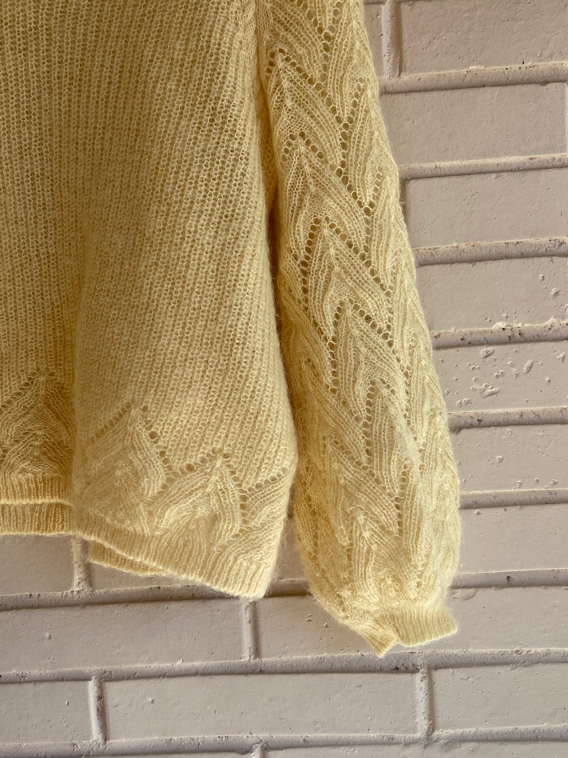 Sézane Jersey amarillo troquelado con las mangas ligeramente abullonadas.