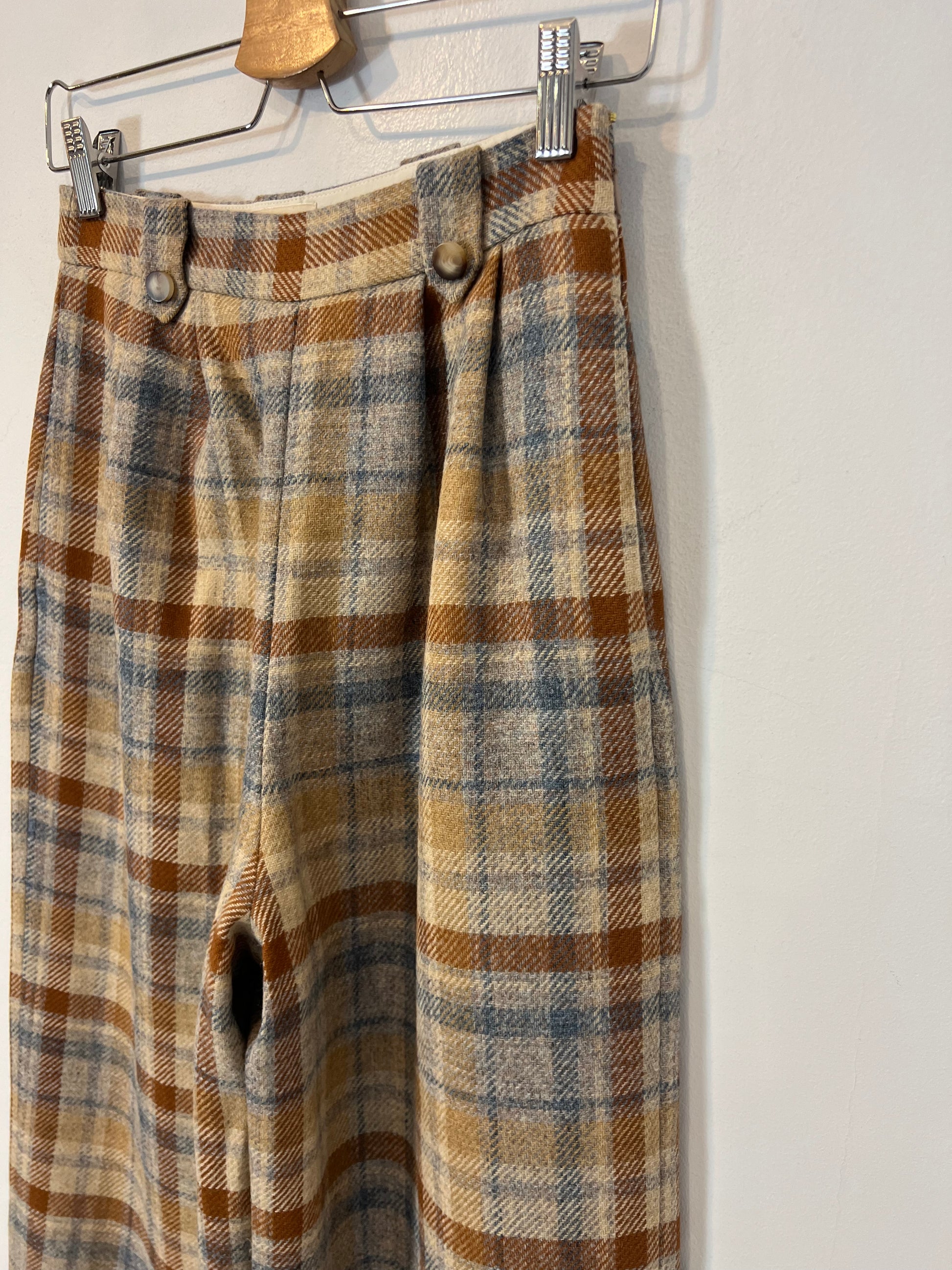 Wide-leg pleated trousers with a plaid print. Non-stretch. Waist 34 cm, length 114 cm.