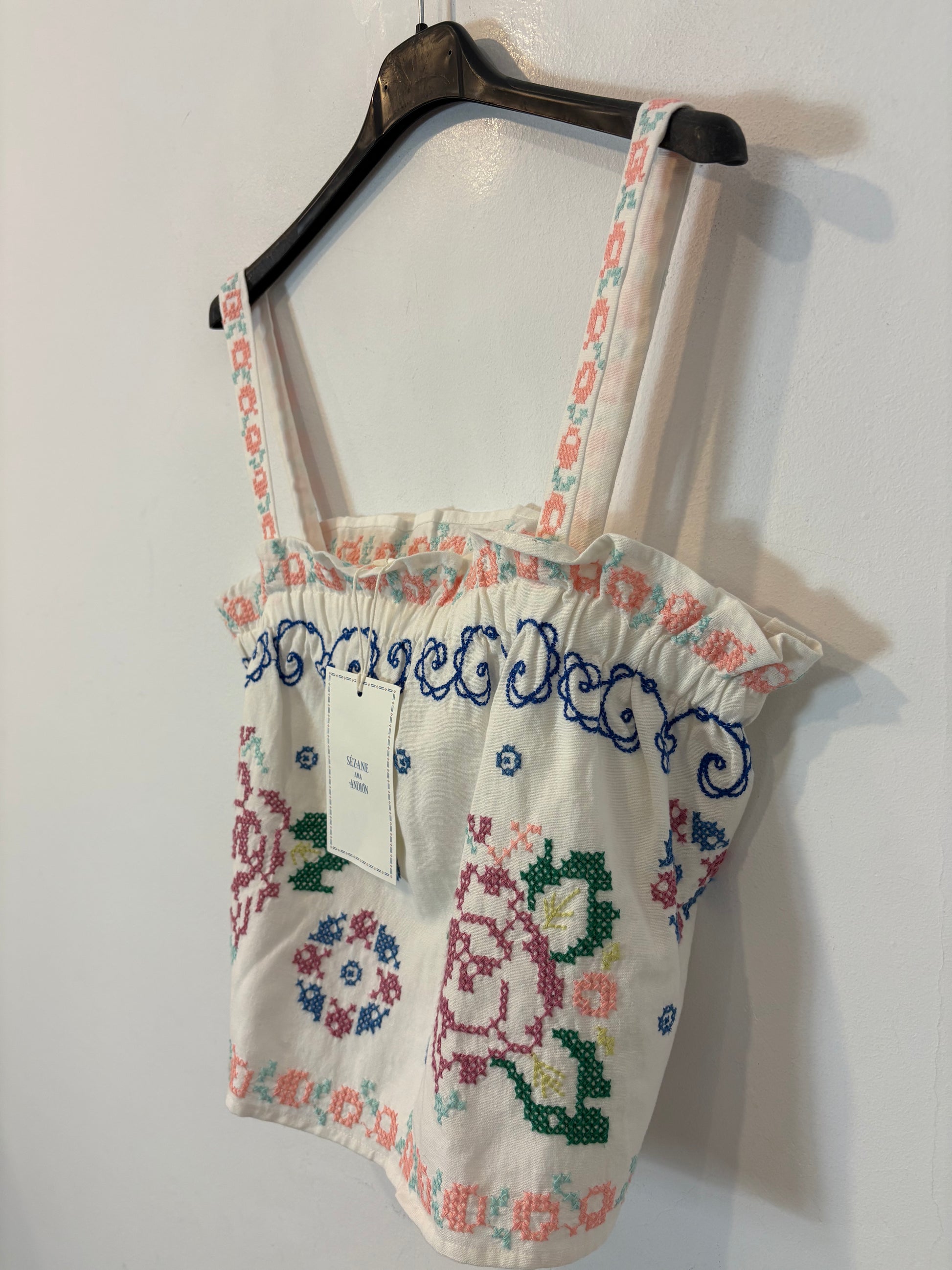 SÉZANE x ANDION. Top blanco bordados