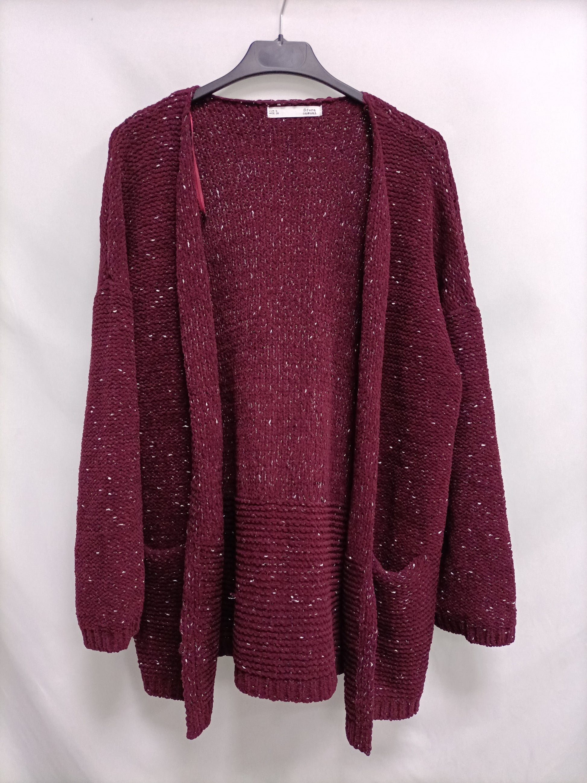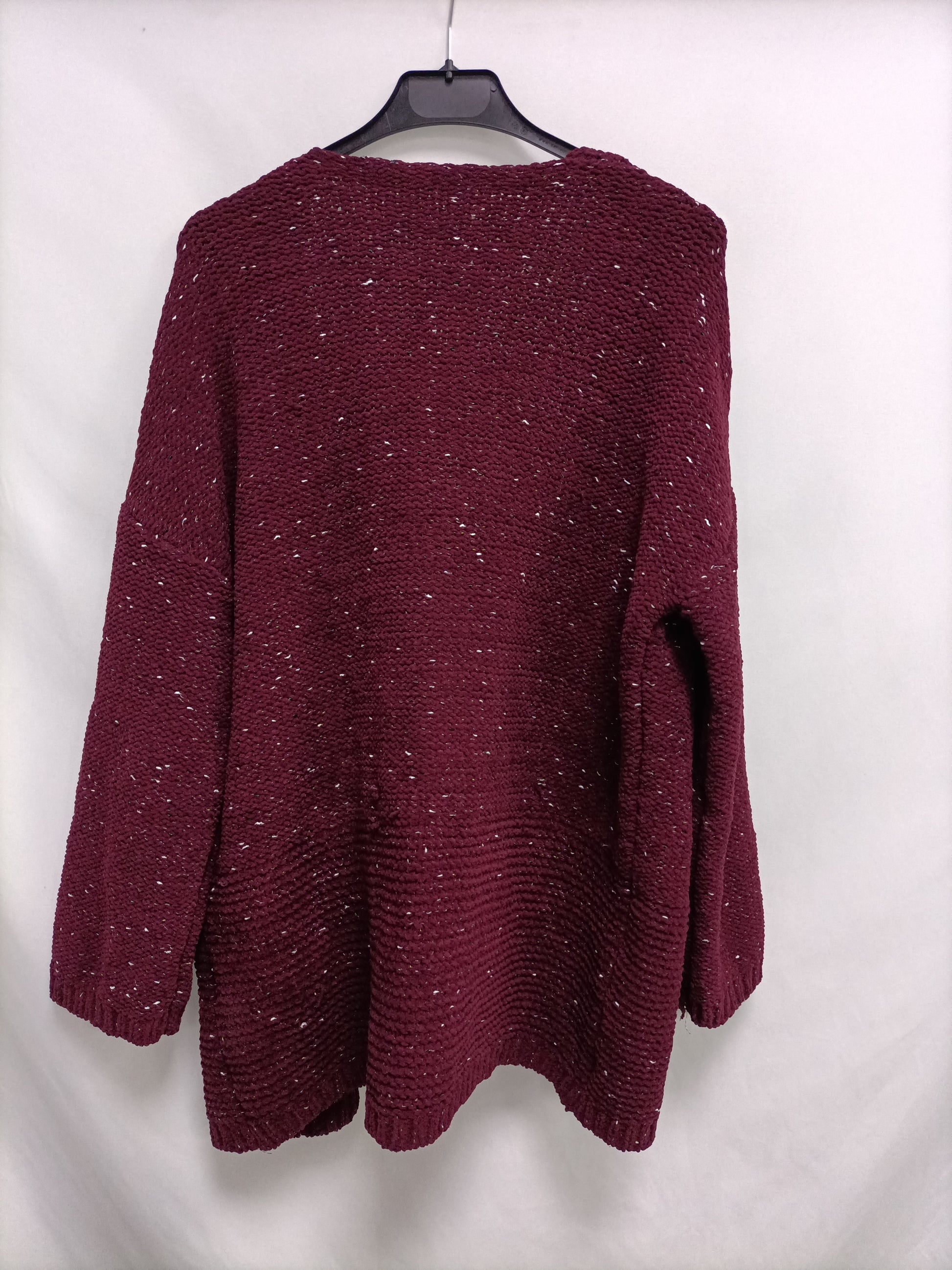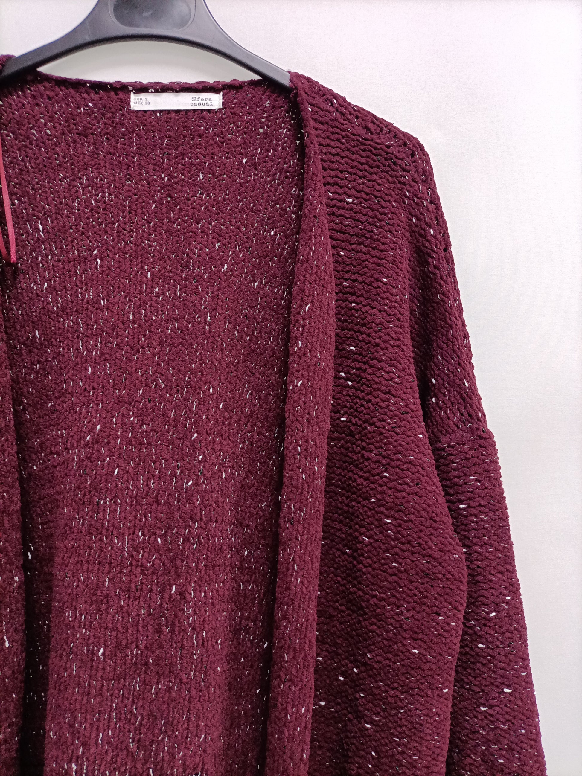 cárdigan burdeos y blanco jaspeado. largo 64 cm