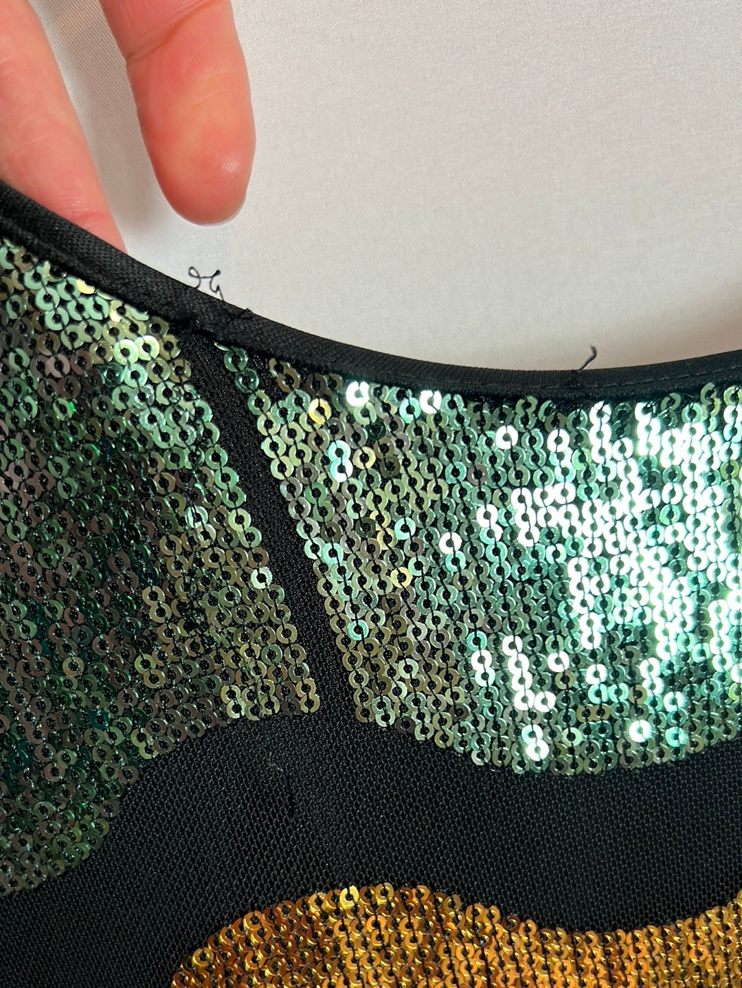 Tara sequin midi dress: missing sequins (photo). Shoulders 39cm, length 129cm