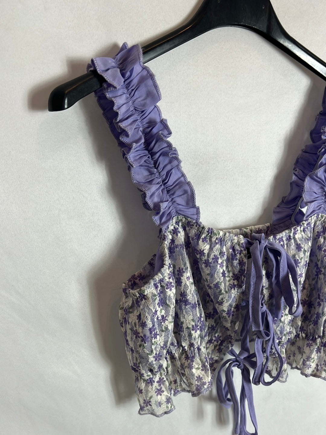 Mini floral lace crop top. 34cm long, 38cm elastic from armpit to armpit.