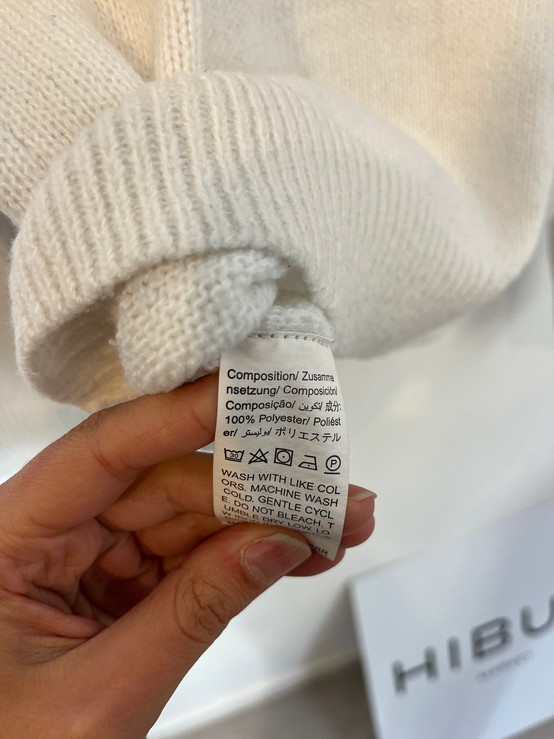 White sweater with black details. Length 59 cm.