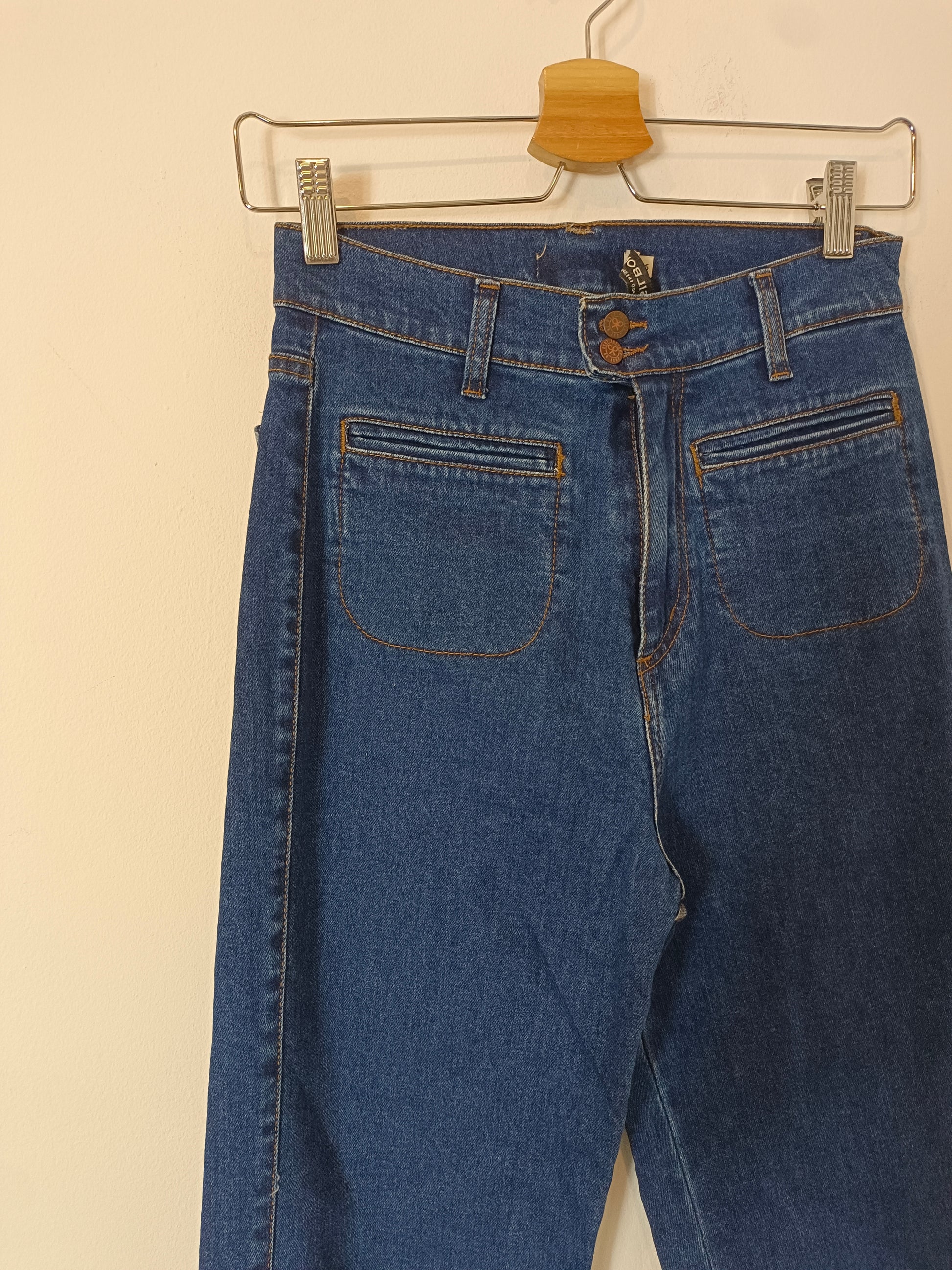 Pantalón ancho denim detalles de bolsillos. Cintura 34 largo 117