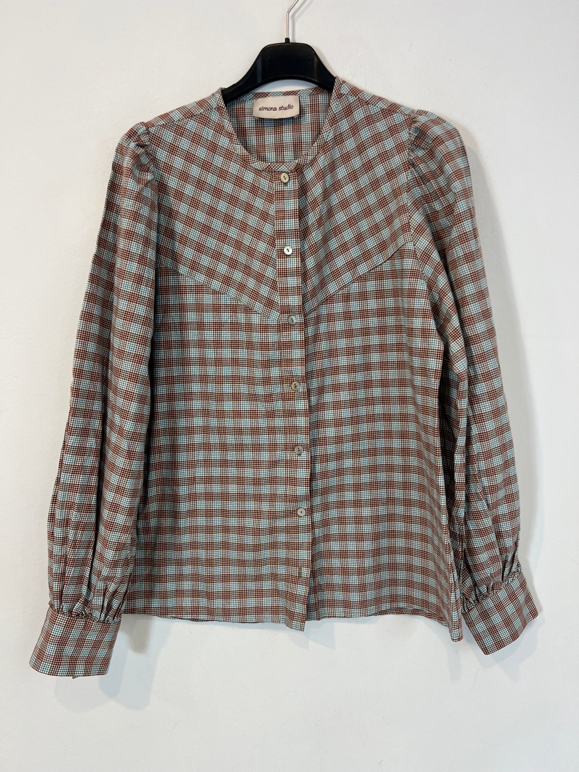 SIMONA STUDIO. Blue and brown checked blouse, size 36