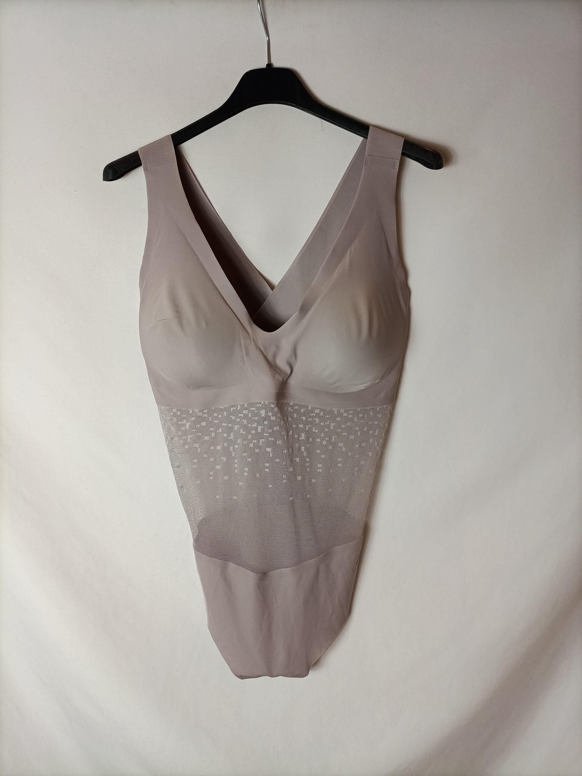 NEW WITH TAG. Laser-cut beige bodysuit with plumeti.
