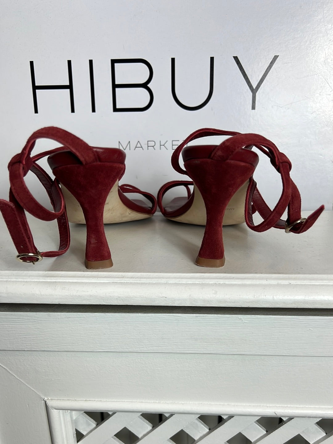 Sandalia piel tiras rojiza. Tara: piel un poco levantada en la parte frontal