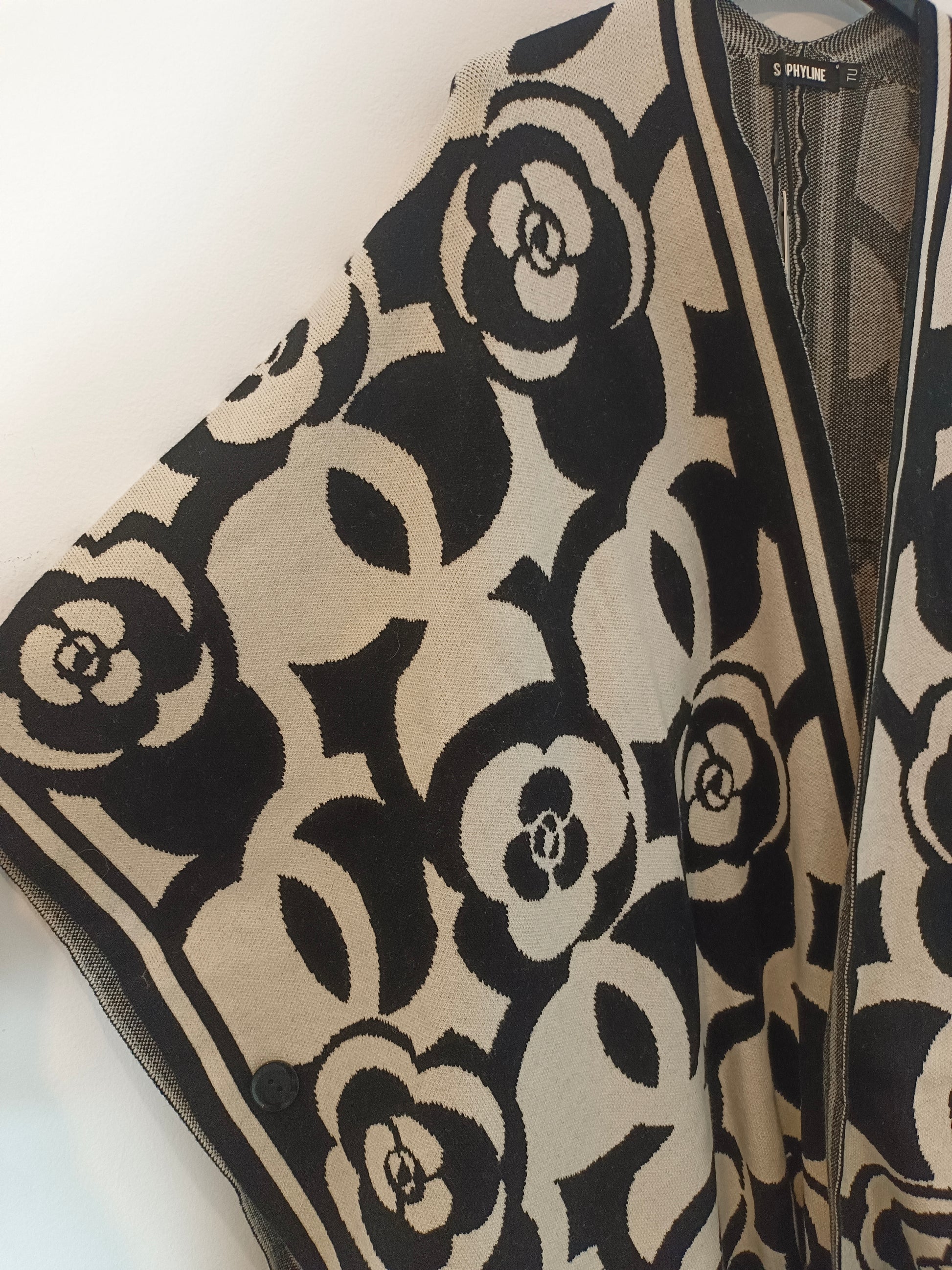 NEW WITH TAG. White knit cardigan with black flowers.
