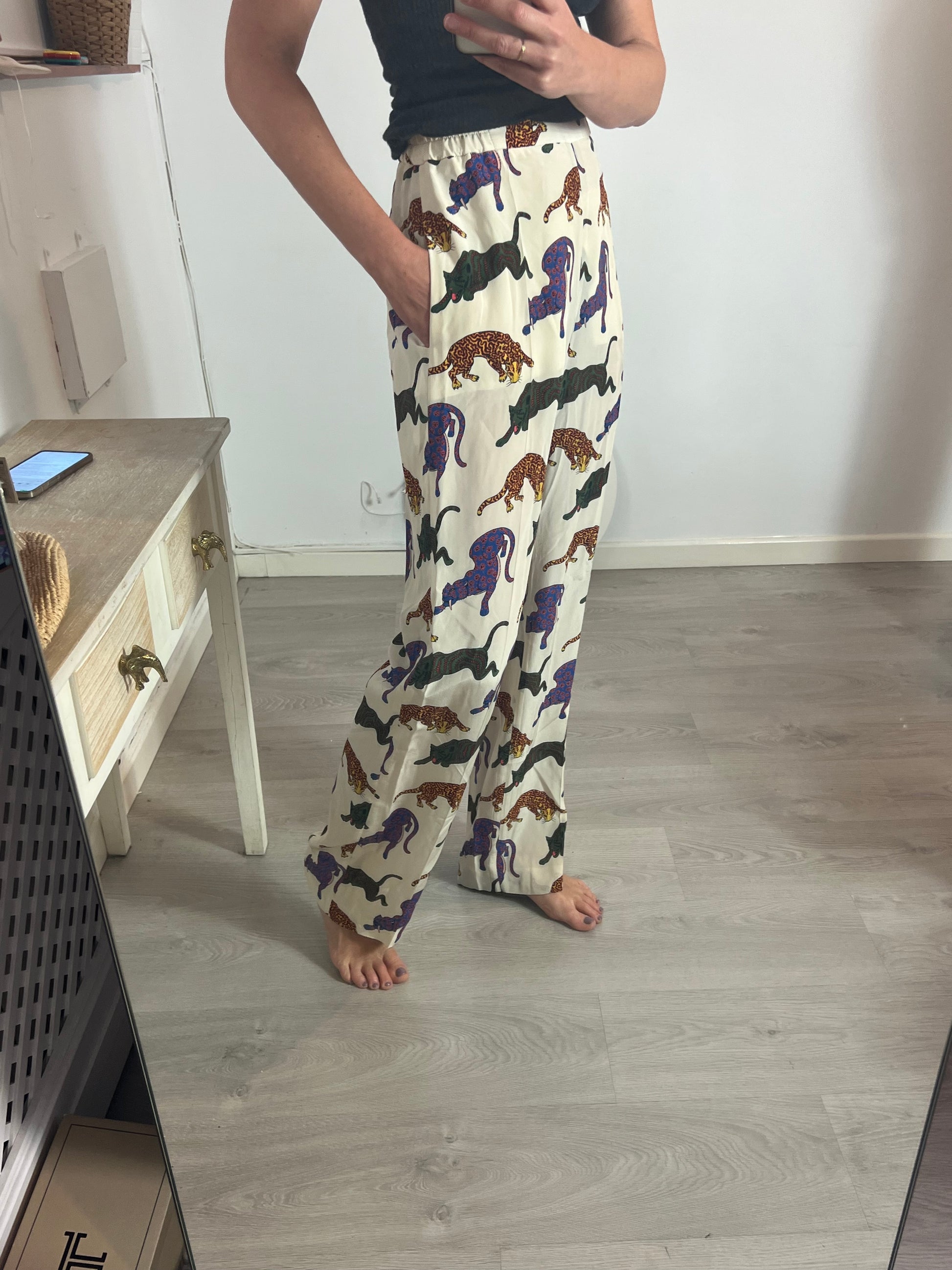 Animal print flowy pants. Elastic waist 35cm, length 116cm