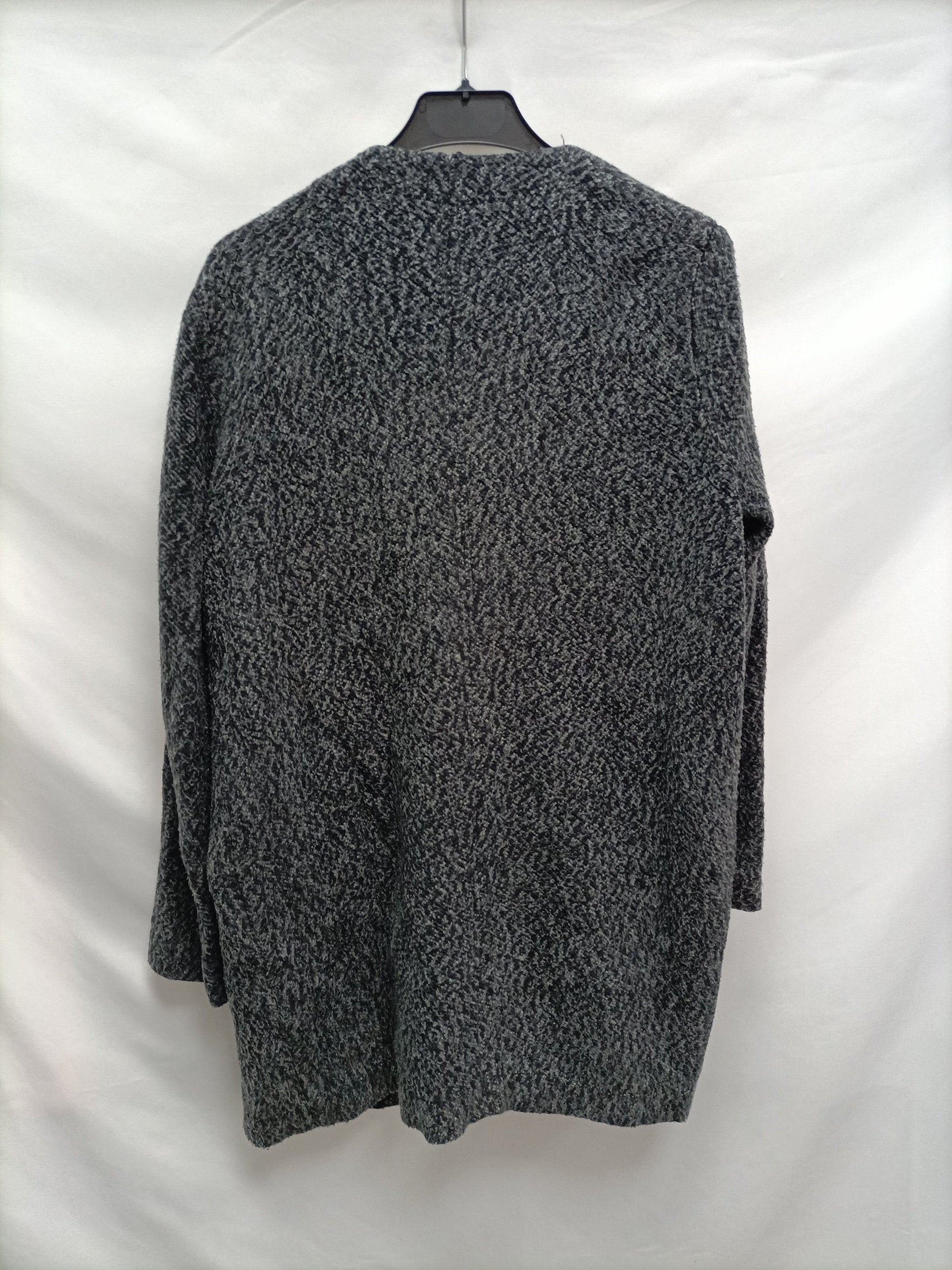 Heather gray coat with zippered pockets. No button fastening. No stretch. Armpit to armpit 50 cm, length 80 cm.
