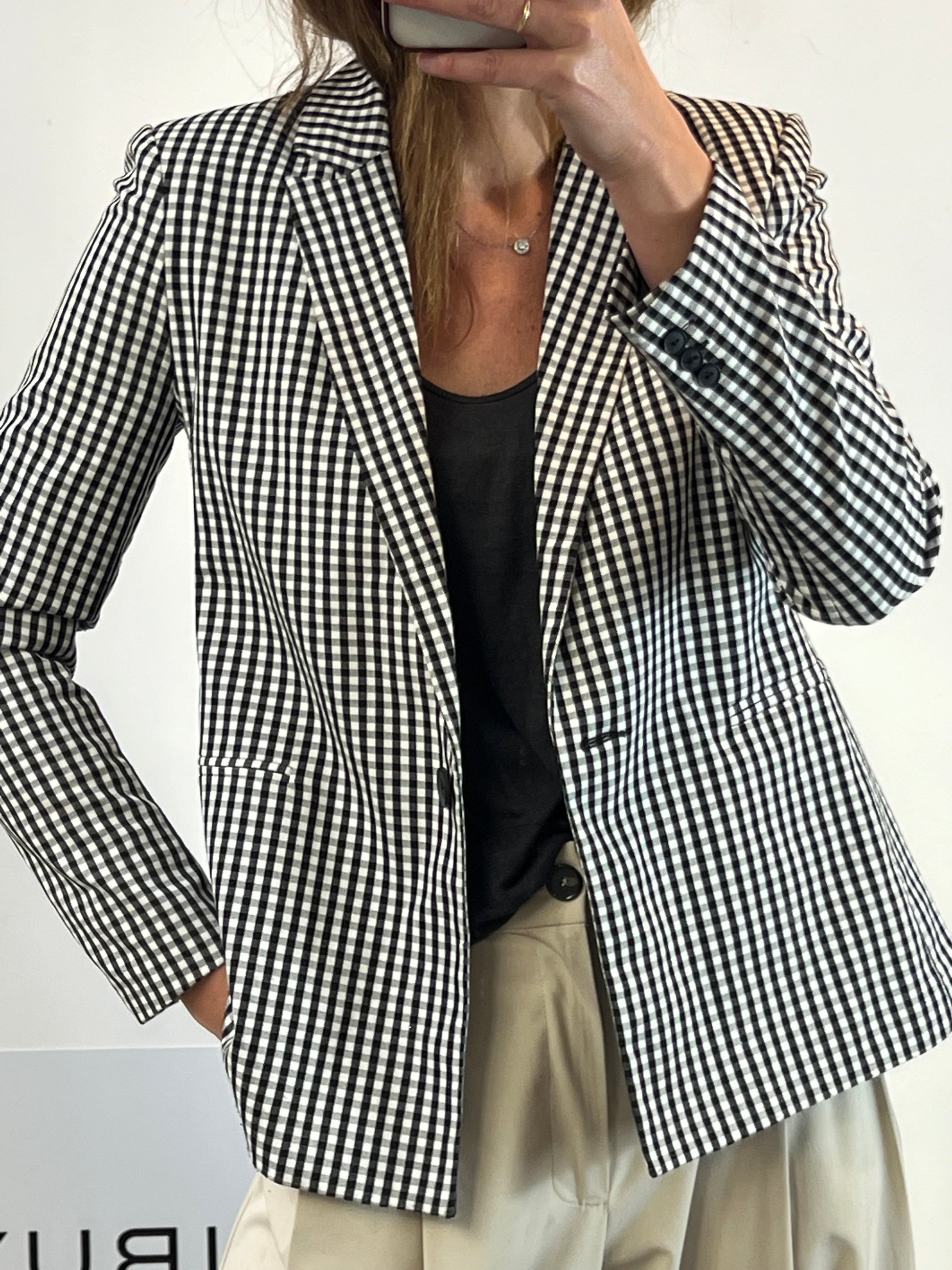 Blazer vichy blanco y negro. Espalda 45 cm, largo 66 cm.