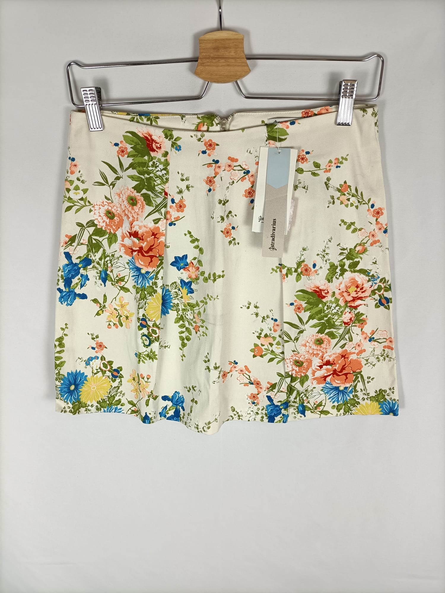STRADIVARIUS.Falda corta beige flores T.36