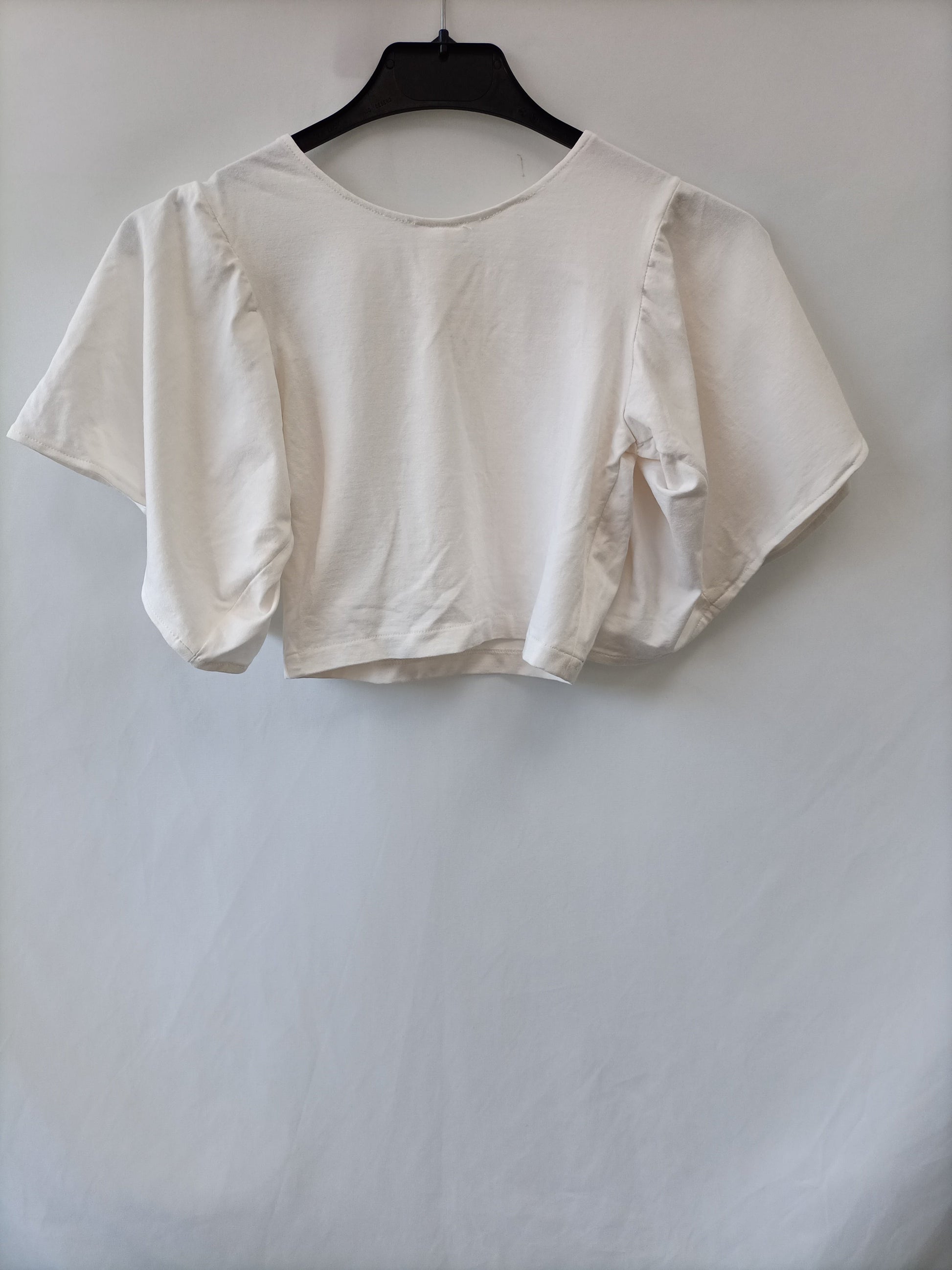 Tanya. XS/S. Beige stretch top with flowing sleeves. Stretch. Length 35 cm.