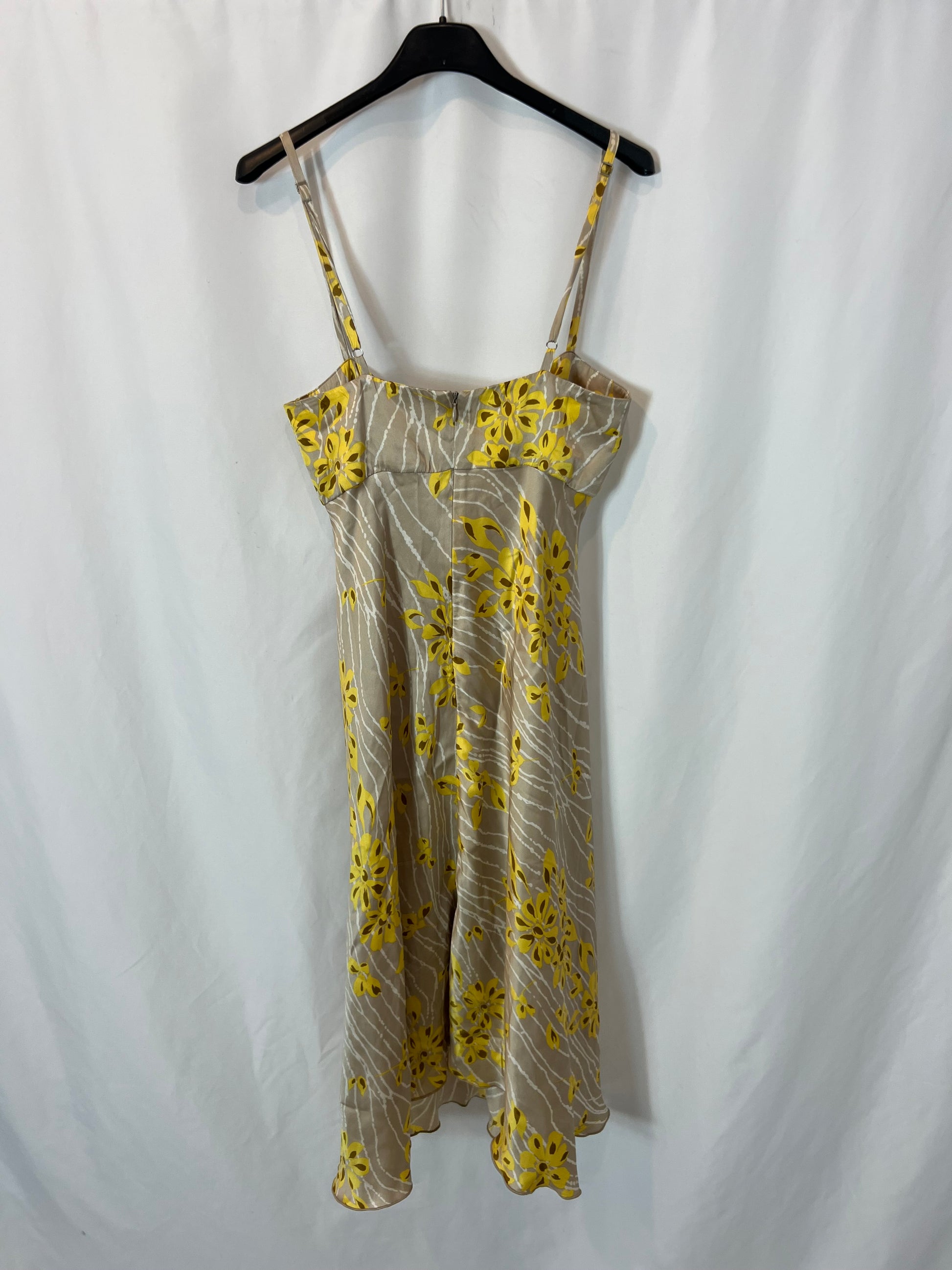Short, non-stretch printed silk dress. Back 40cm, waist 36cm, length 106cm
