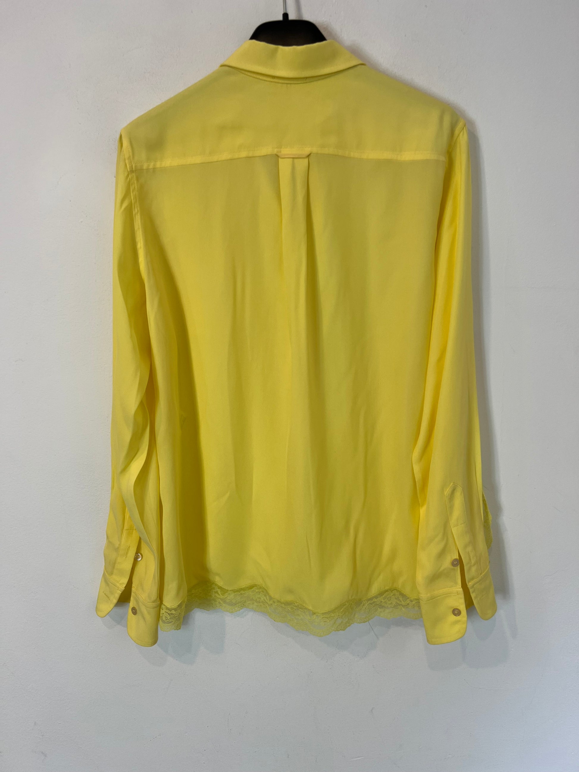 Yellow blouse with lace details. 61 cm from armpit to armpit, 65 cm long.