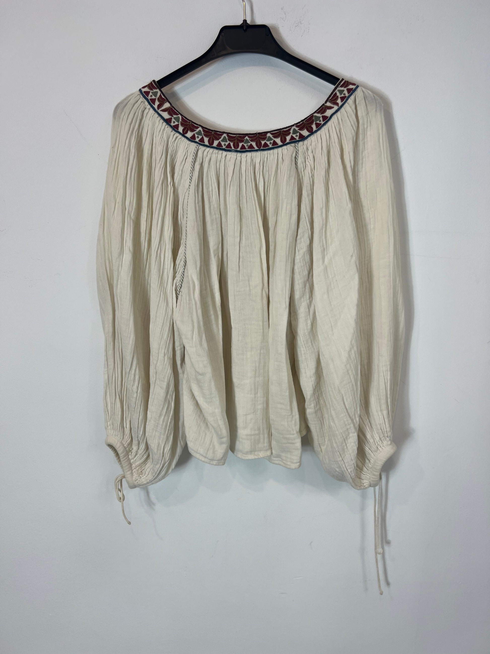 TEN TWELVE. Beige blouse with embroidered collar detail S.0 (xs/s)