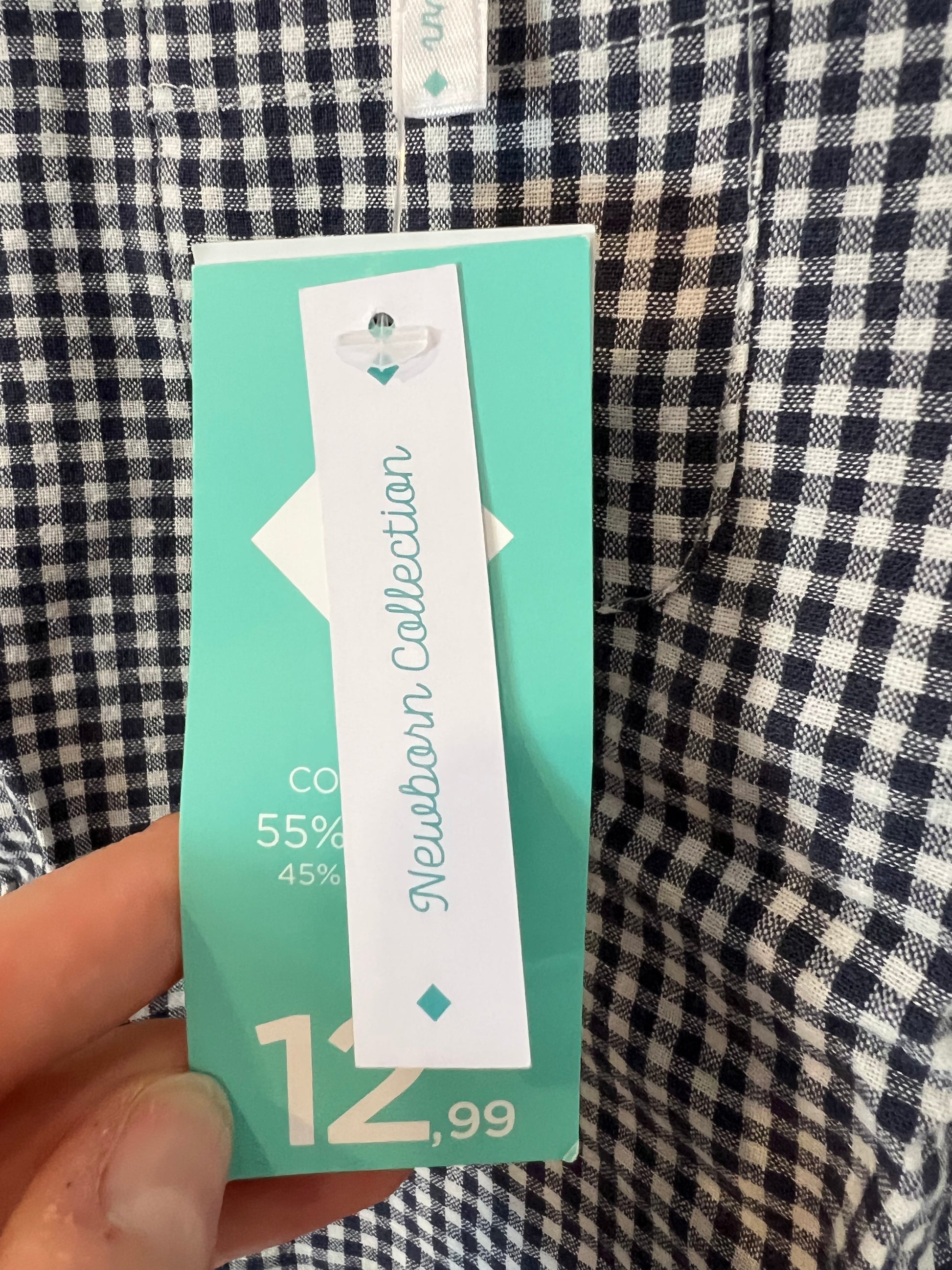 NUEVO CON ETIQUETA. Ranita con lino cuadros vichy azules y blancos