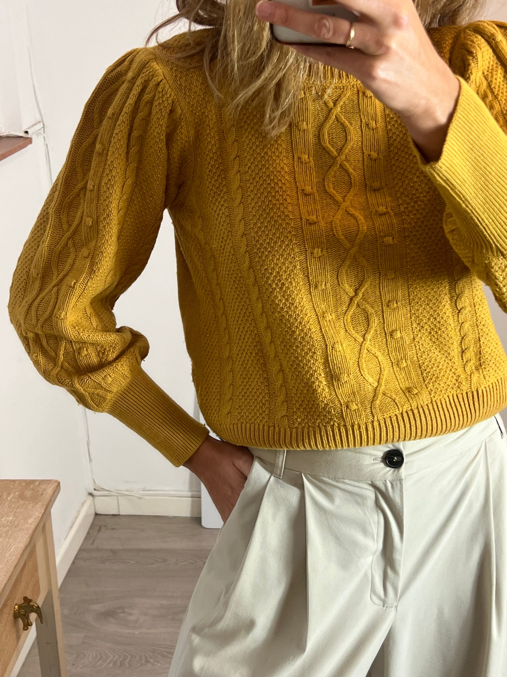 Jersey mostaza tejido ochos . Largo 53cm