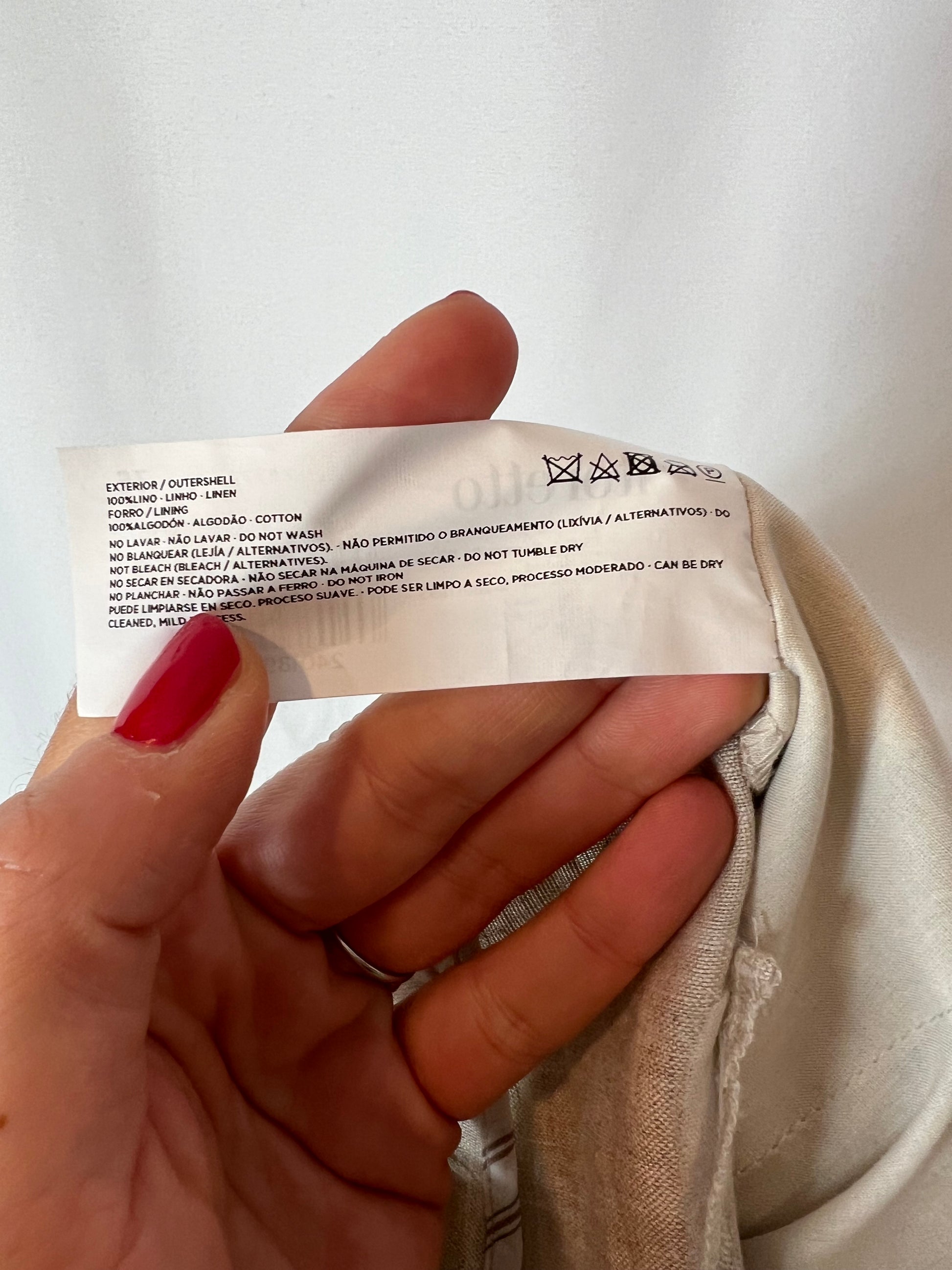 Beige 100% linen fluid trousers. Waist 38cm, length 108cm