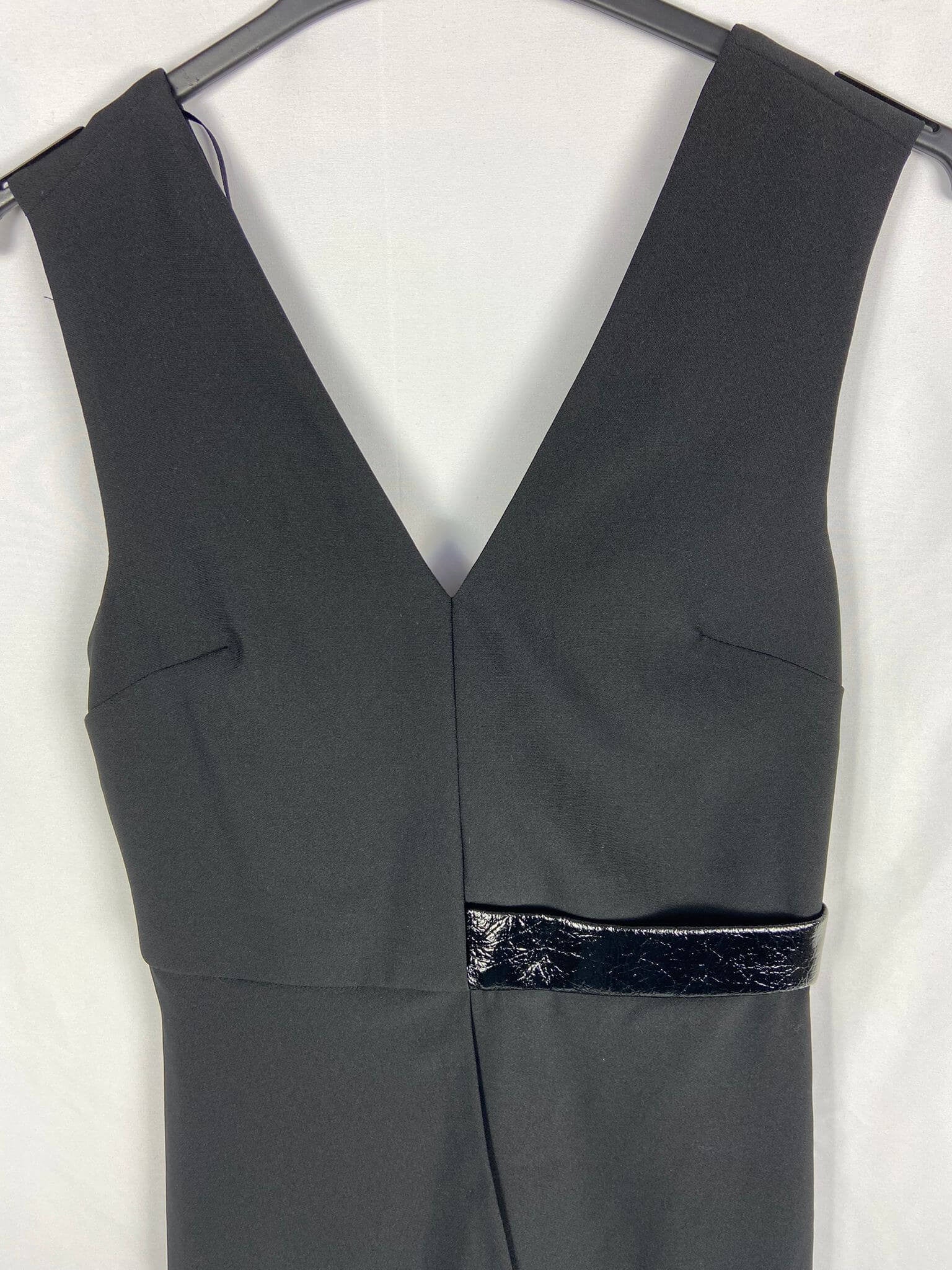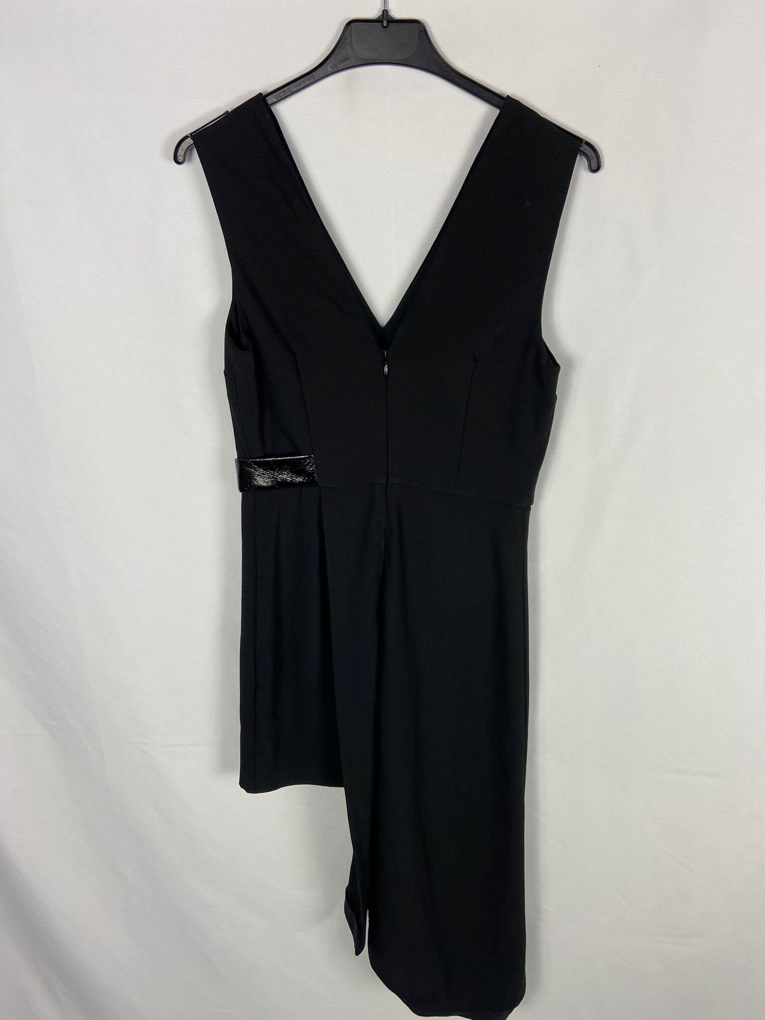 NEW WITH TAG. Asymmetrical black non-stretch dress with back zipper. Short length: 77 cm, long length: 107 cm, armhole to armhole: 40 cm.