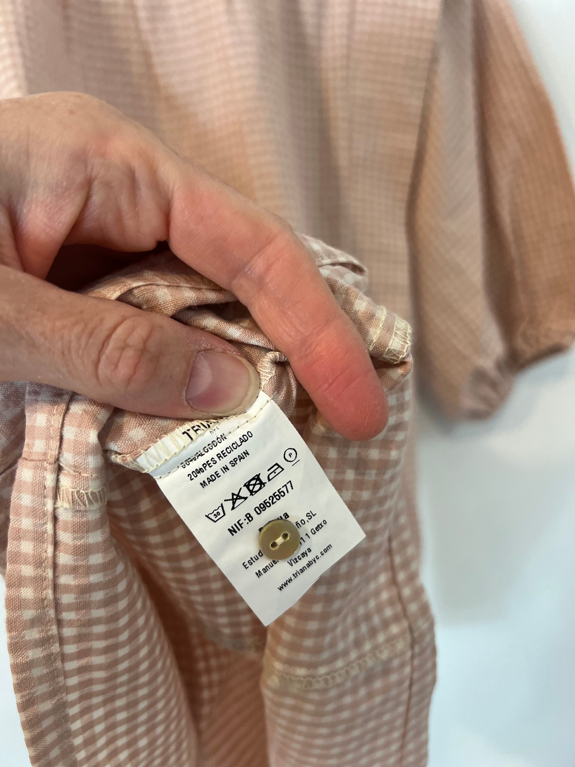 Blusa de cuadros rosa y blanca con detalle en los hombros. de sisa a sisa 52 cm largo 61 cm