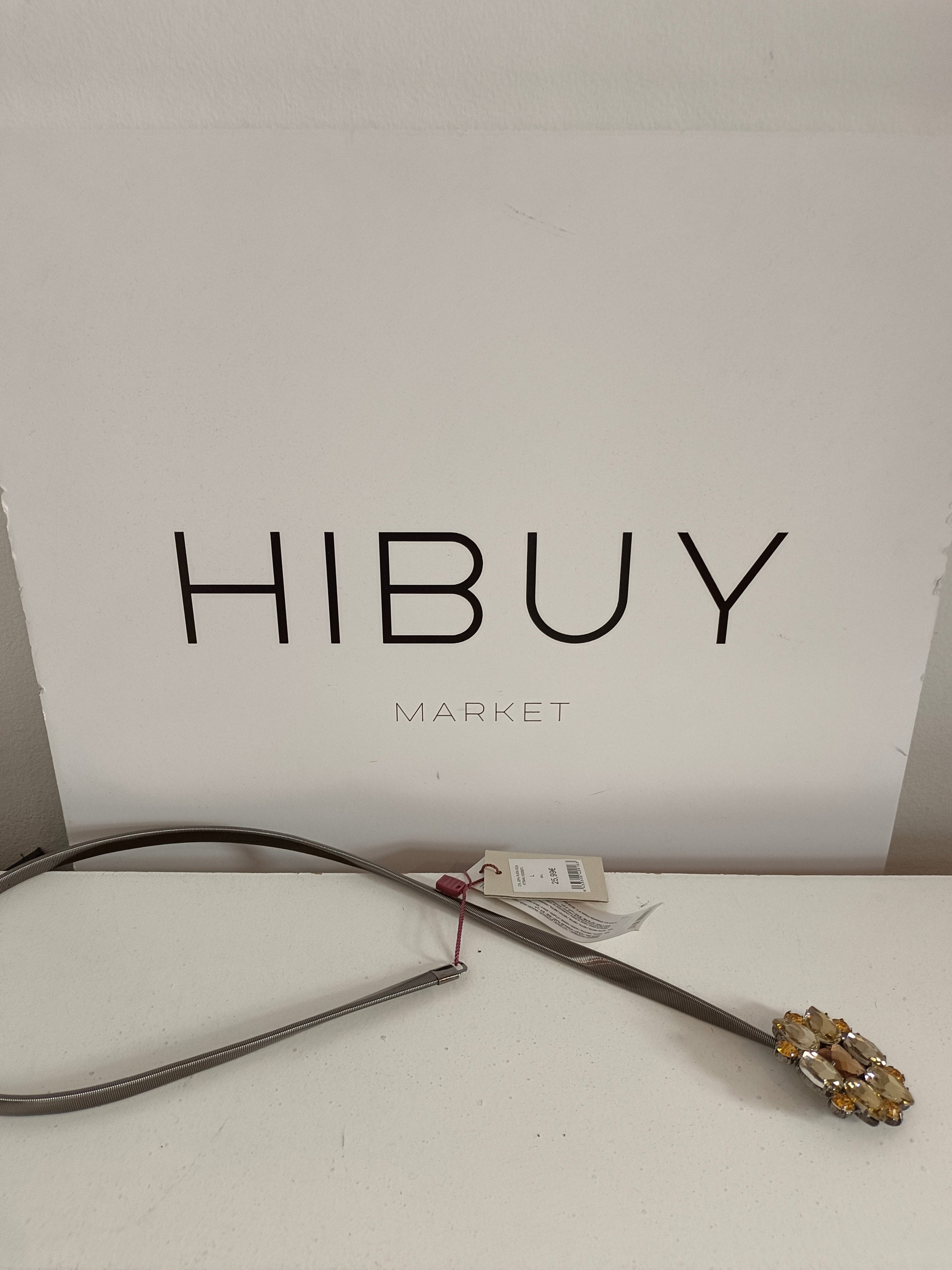 NEW WITH TAG. Thin silver elastic belt with rhinestone buckle.