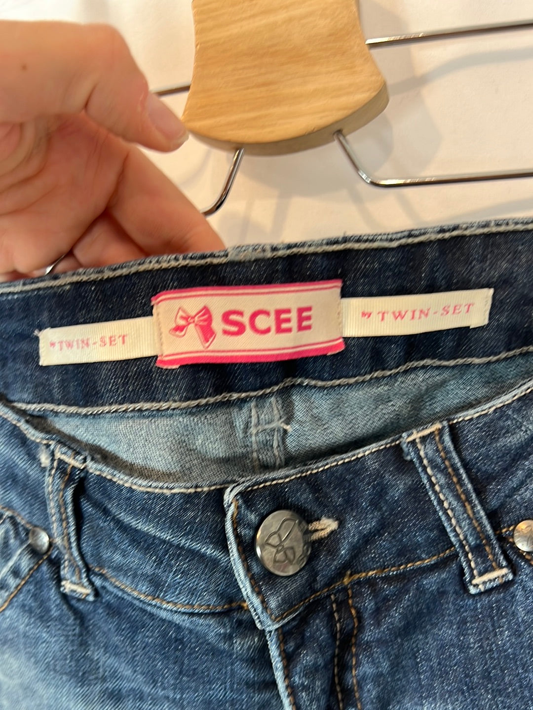 TWIN-SET. Denim shorts with ruffle detail. T 27 (38)