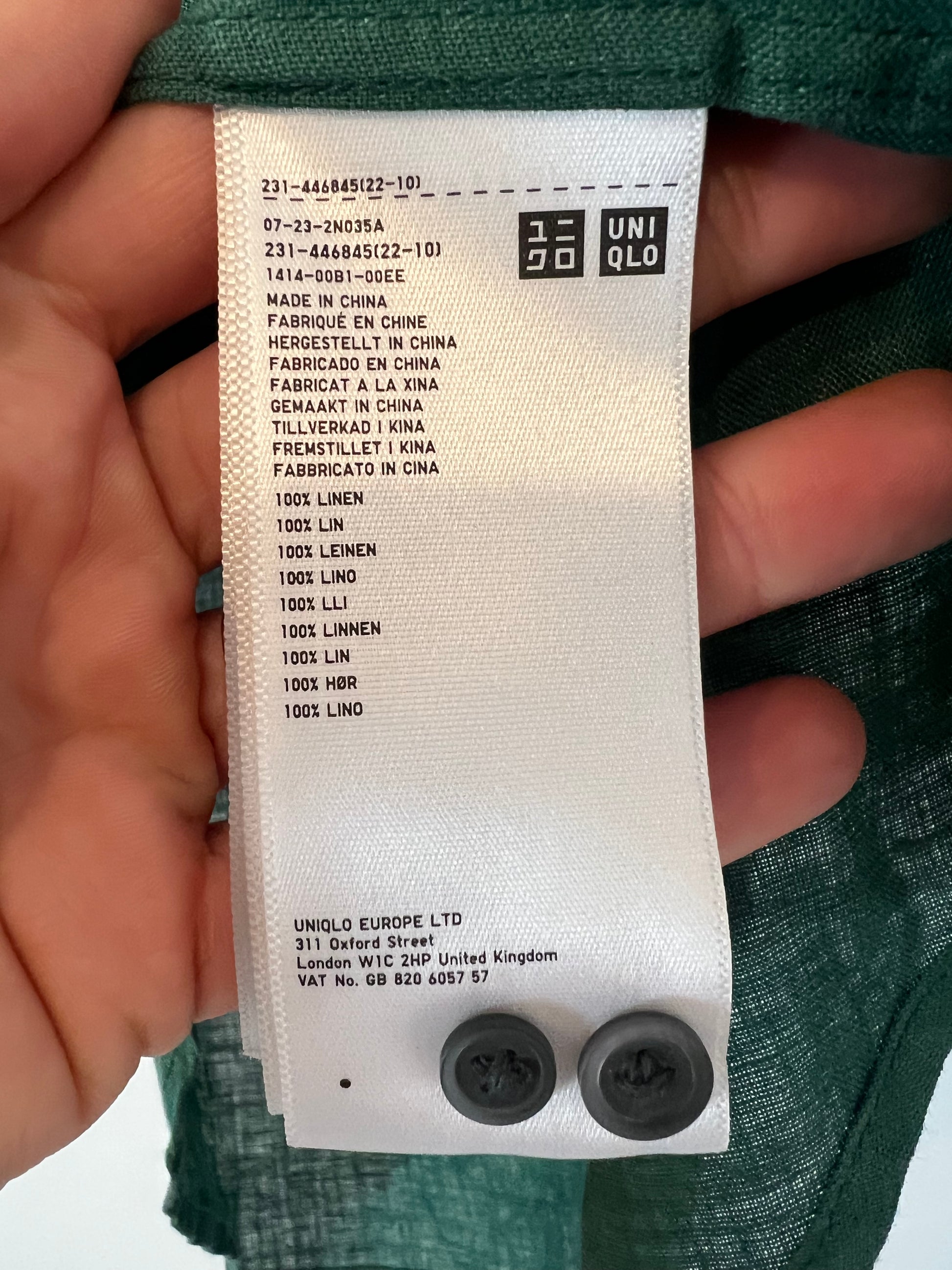 UNIQLO. Dark green linen blouse. Size XS