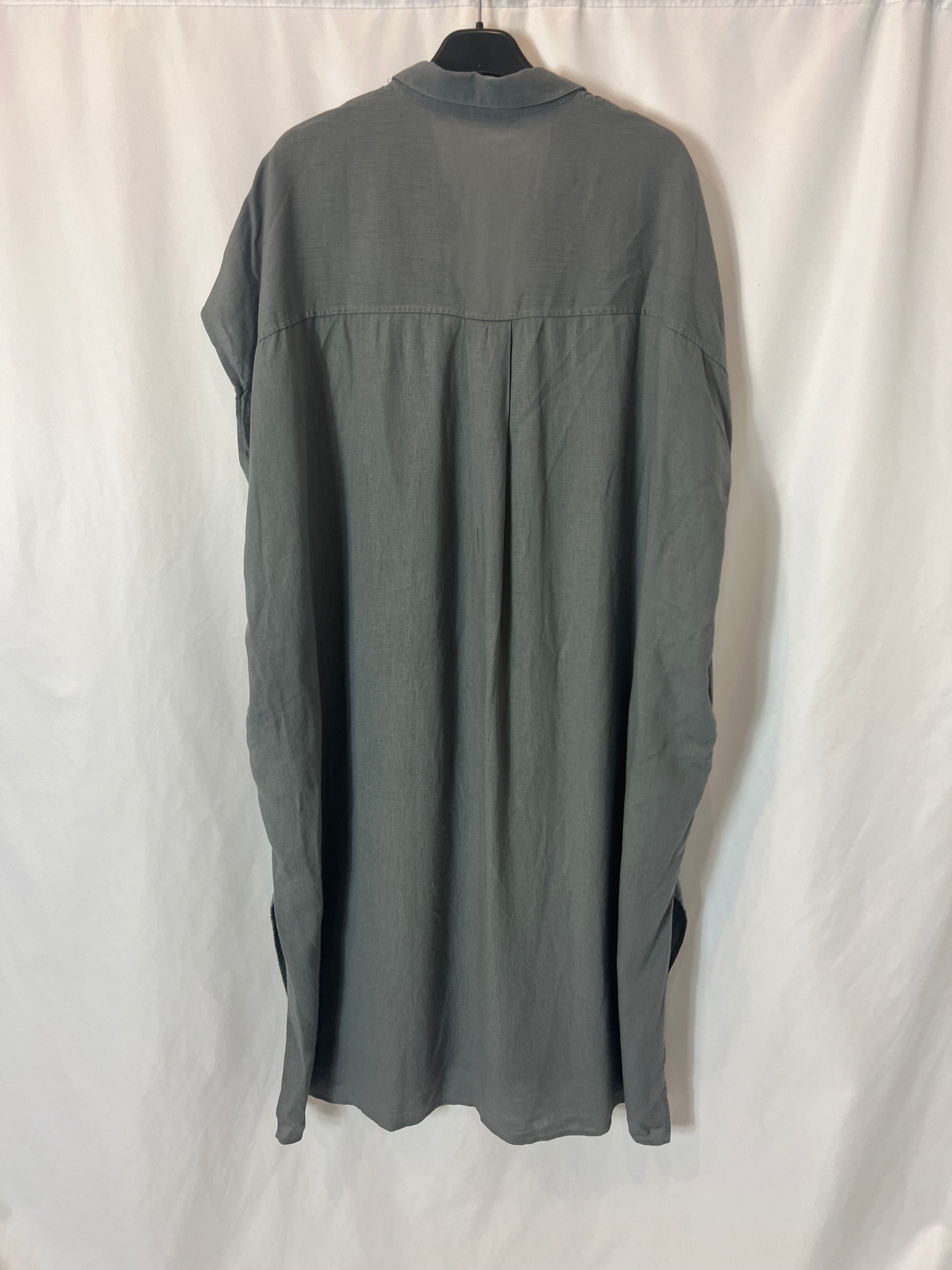 Flowy gray button-down midi shirt dress with pockets. 108cm long.