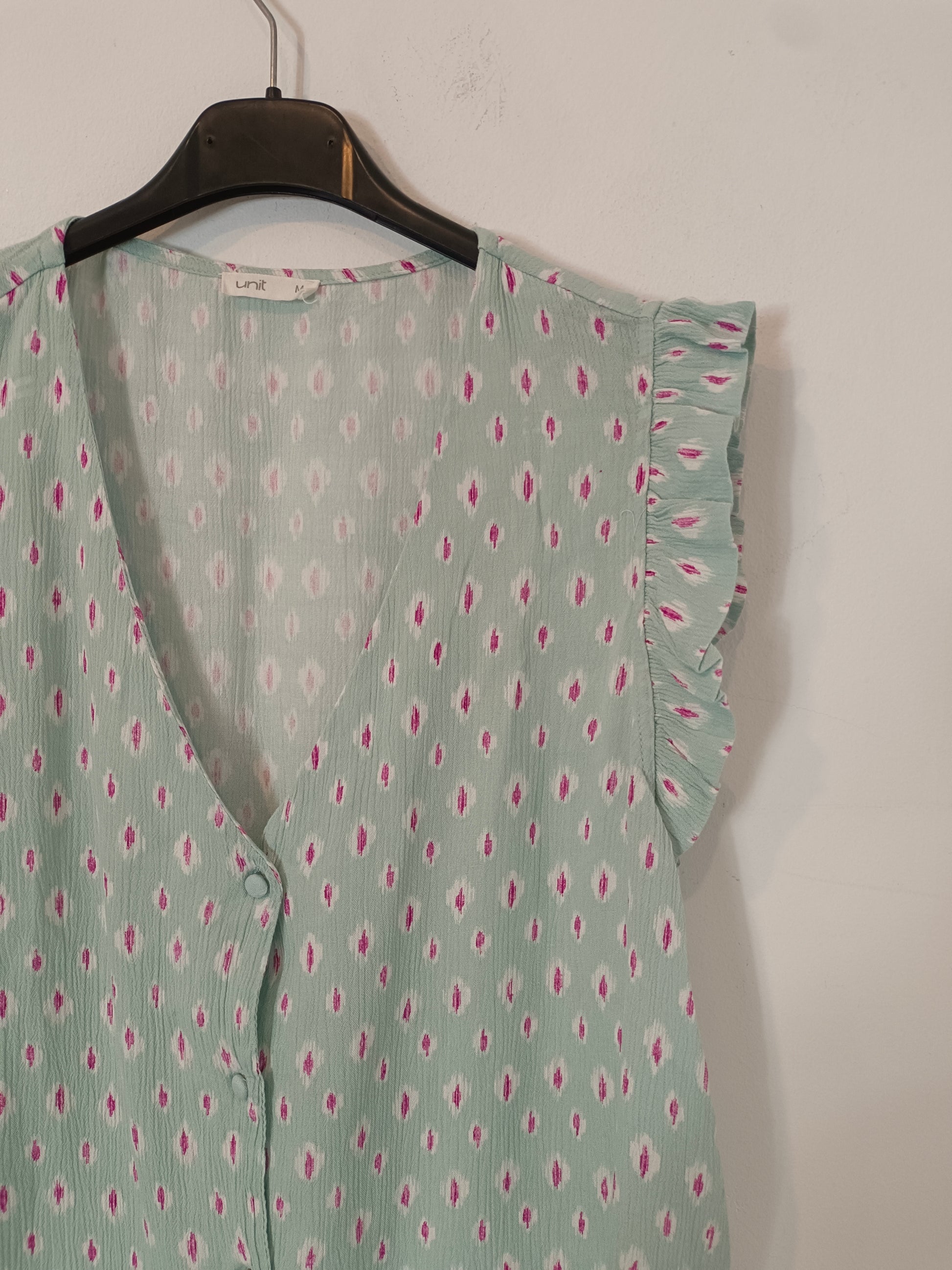 Aqua green top with burgundy details. Armpit to armpit cm, length cm