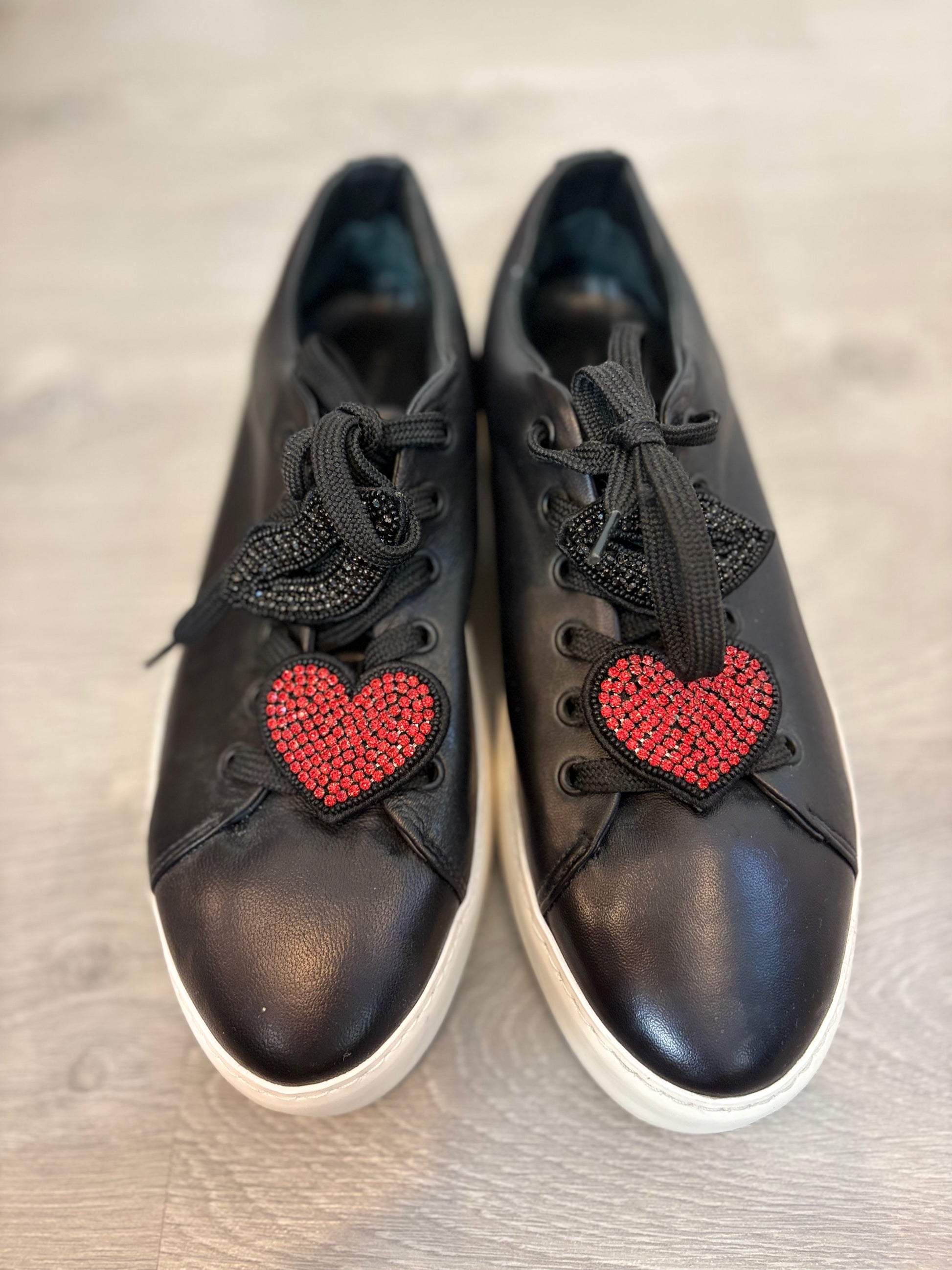 UTERQÜE. Black sneakers with brooch detail. Size 40