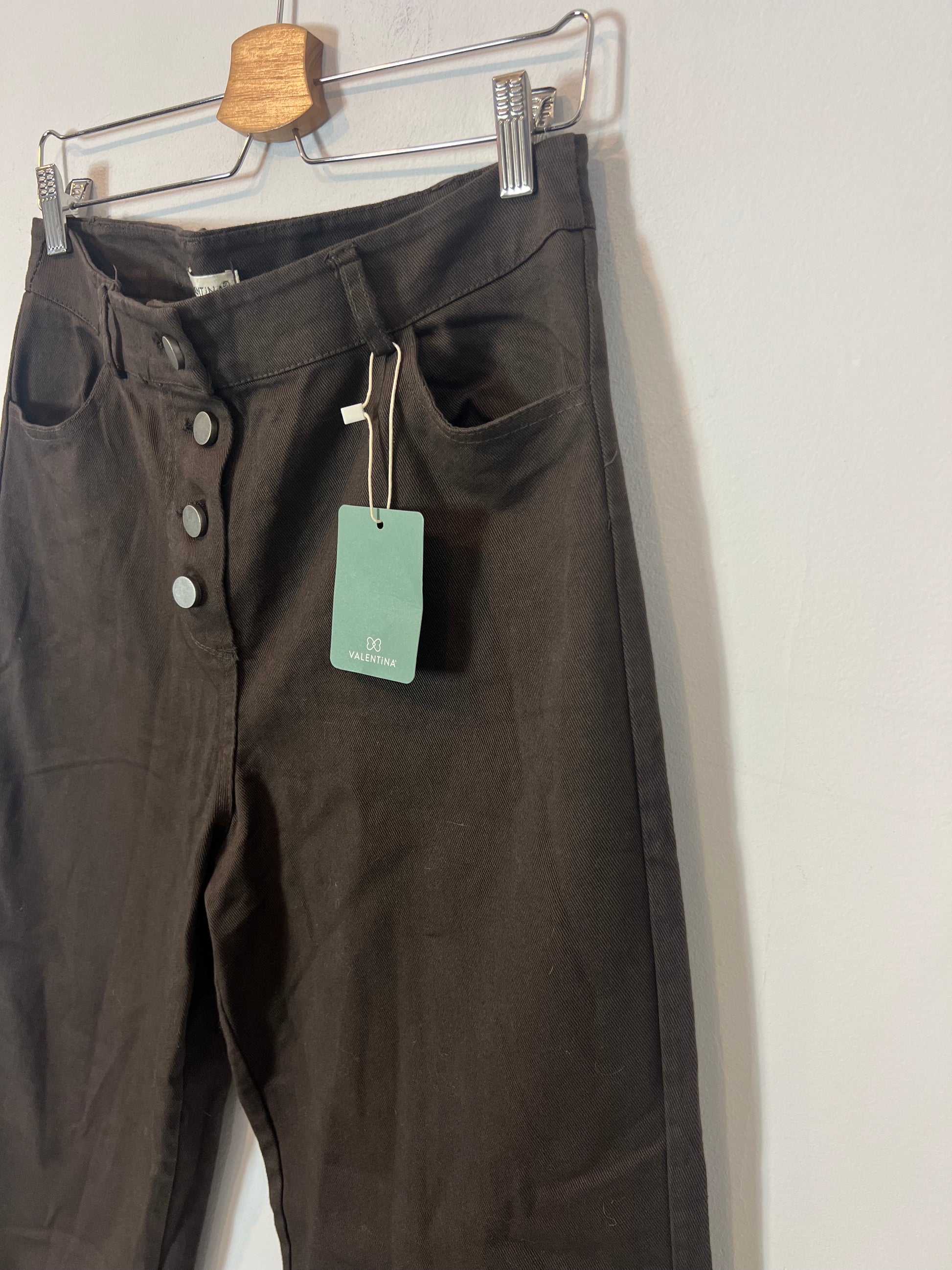 VALENTINA. Brown straight-leg trousers with buttons, size 40
