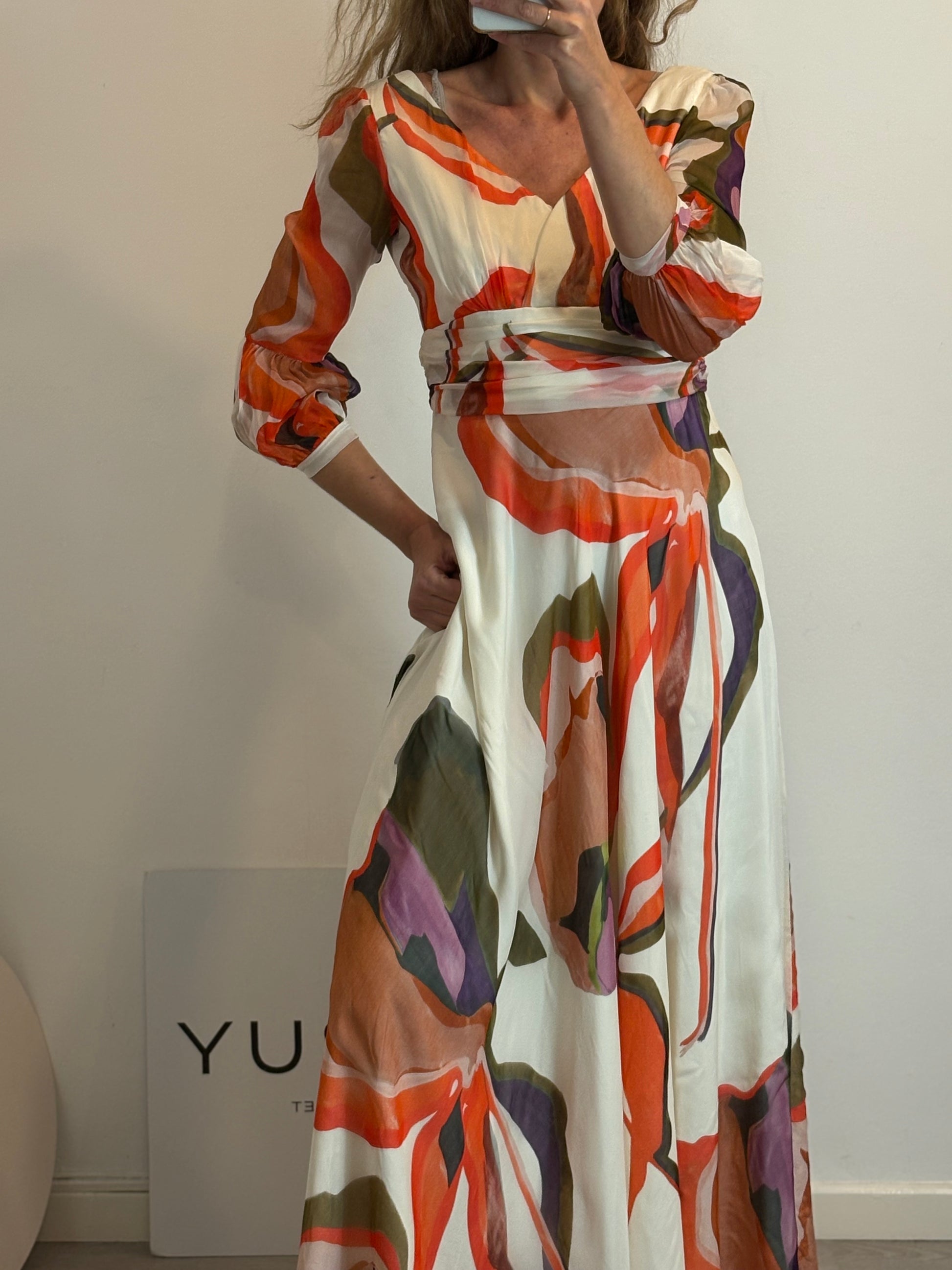 Vestido largo estampado mangas gasa