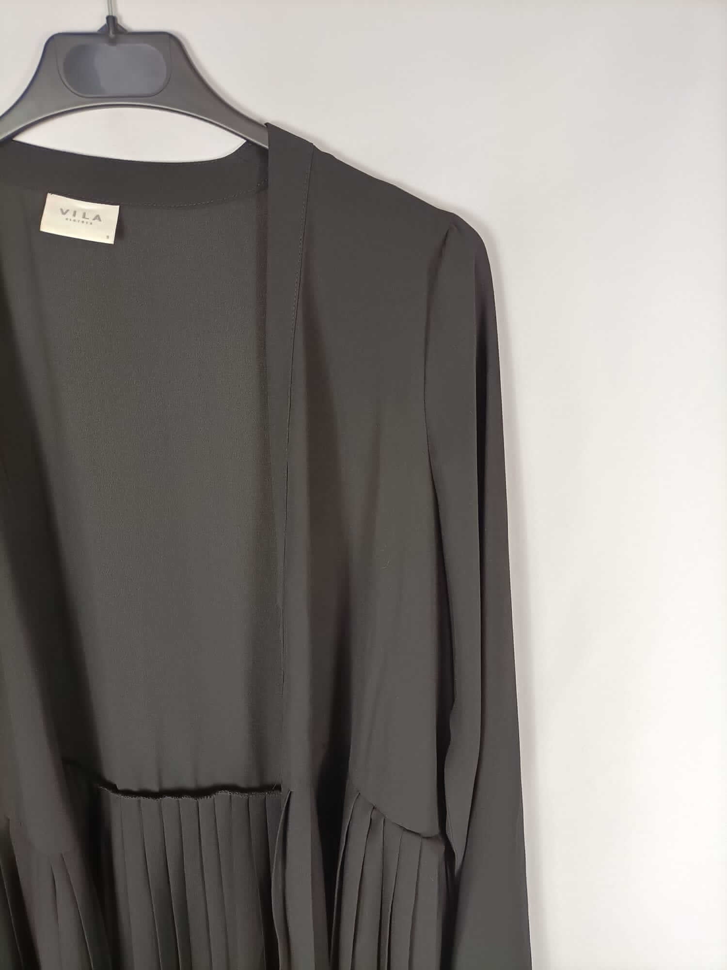 VILA. Black semi-sheer pleated fluid thin jacket T. s