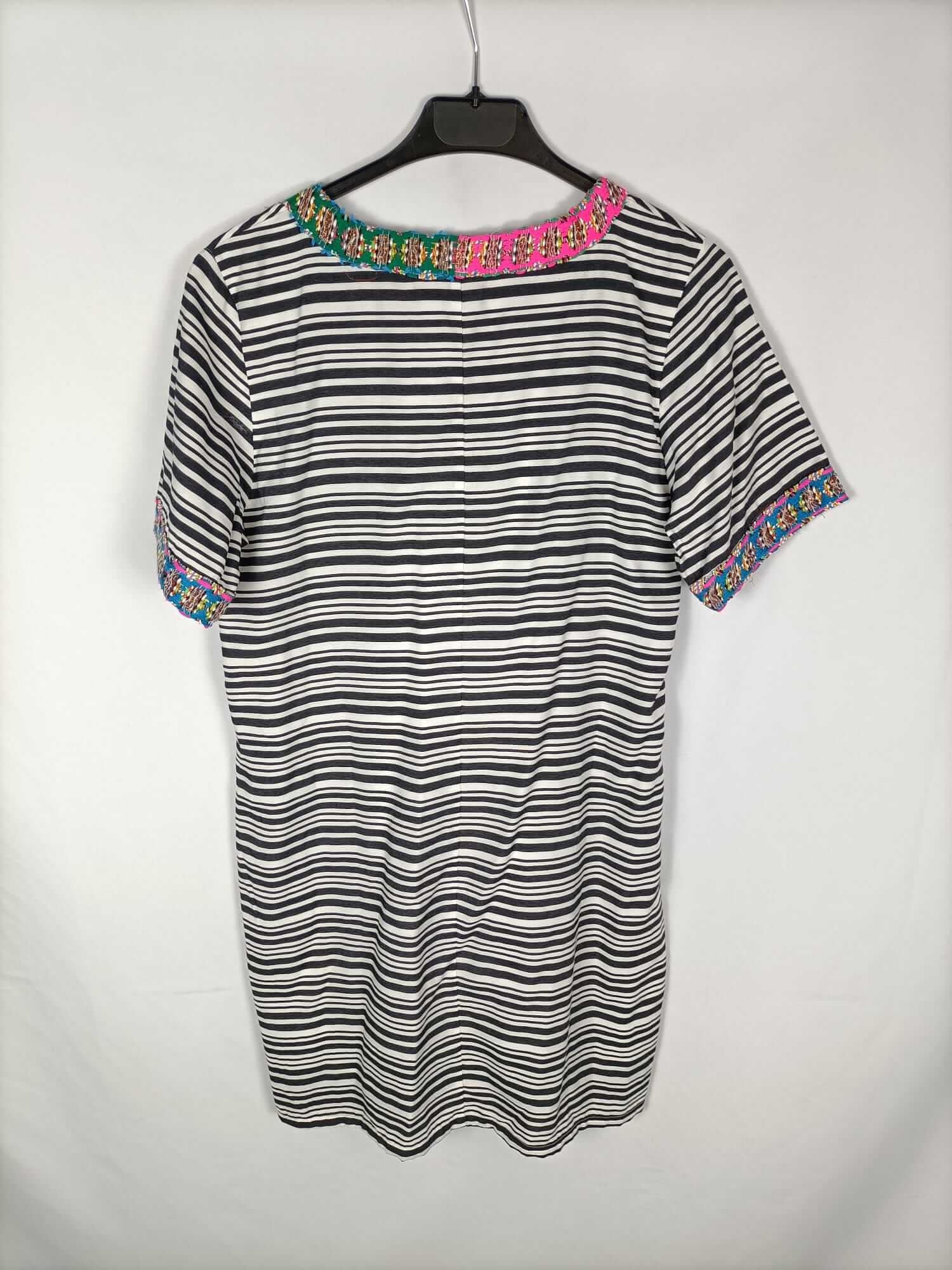 VILAGALLO. Vestido rayas negras y abalorios T.38