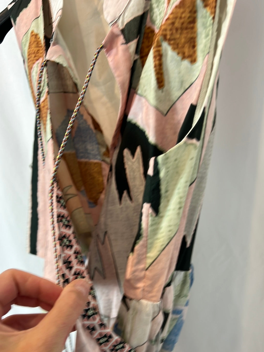 Tie-dye jumpsuit. Very fine, non-stretchy denim. Armhole to waist 46cm, length 116cm.