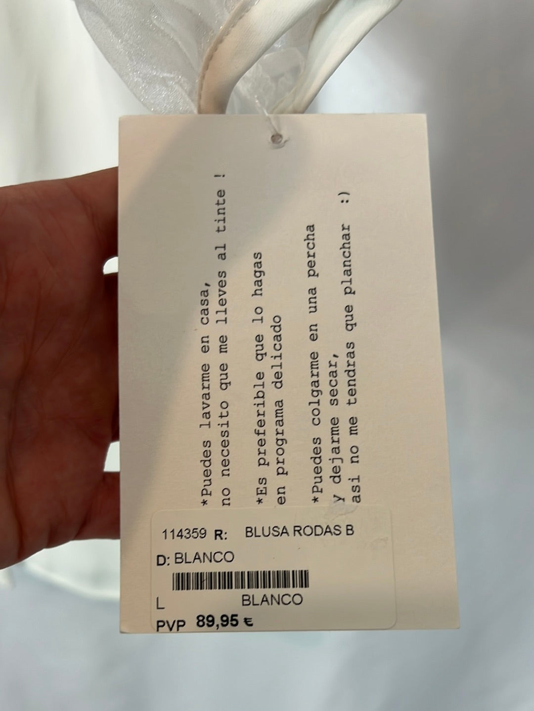 NEW WITH TAG. White blouse with sheer sleeve detail. Back 44cm, length 57cm.