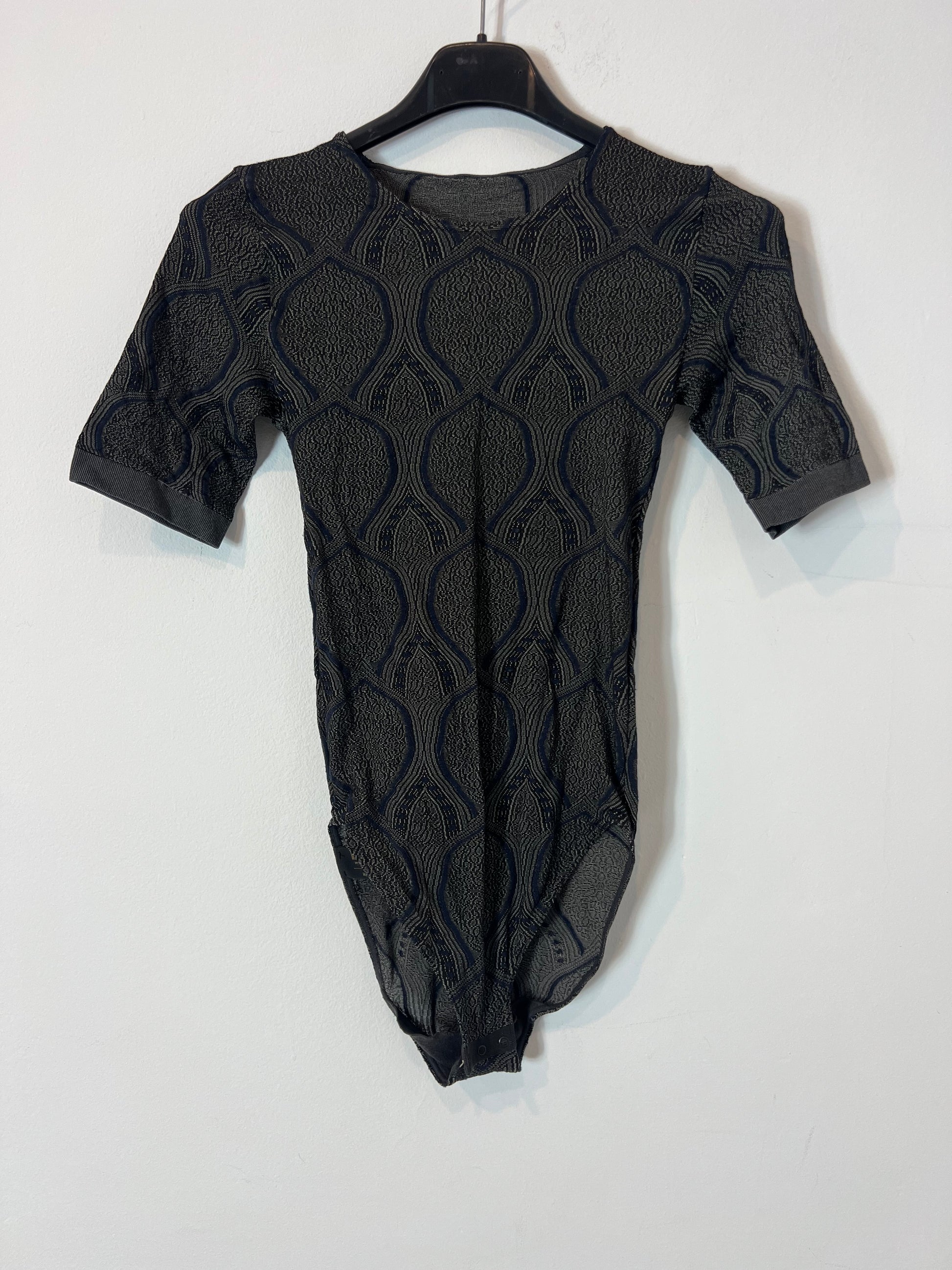 WOLFORD. Gray elastic printed bodysuit. T.S.