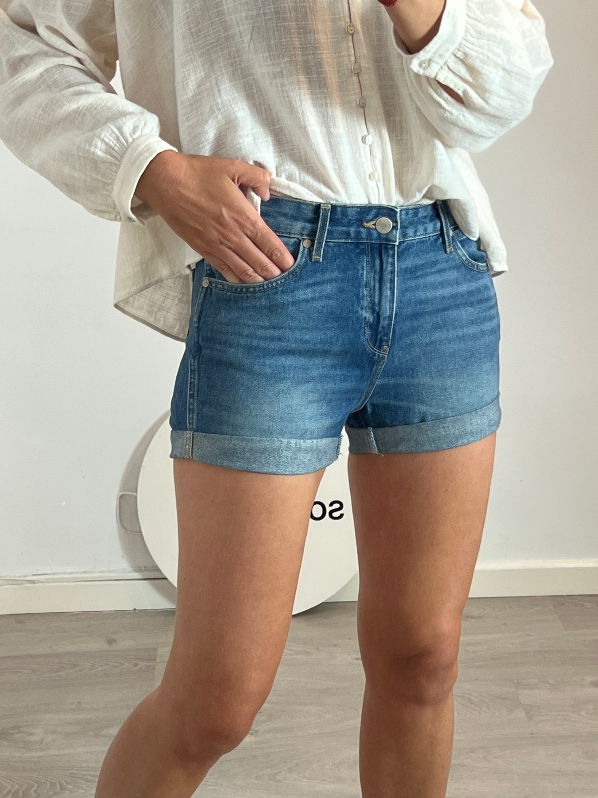 Wrangler. Shorts denim cortito con dobladillo. No elástico. Cintura 40 cm largo 36 cm. En etiqueta marca xs boyfriend short