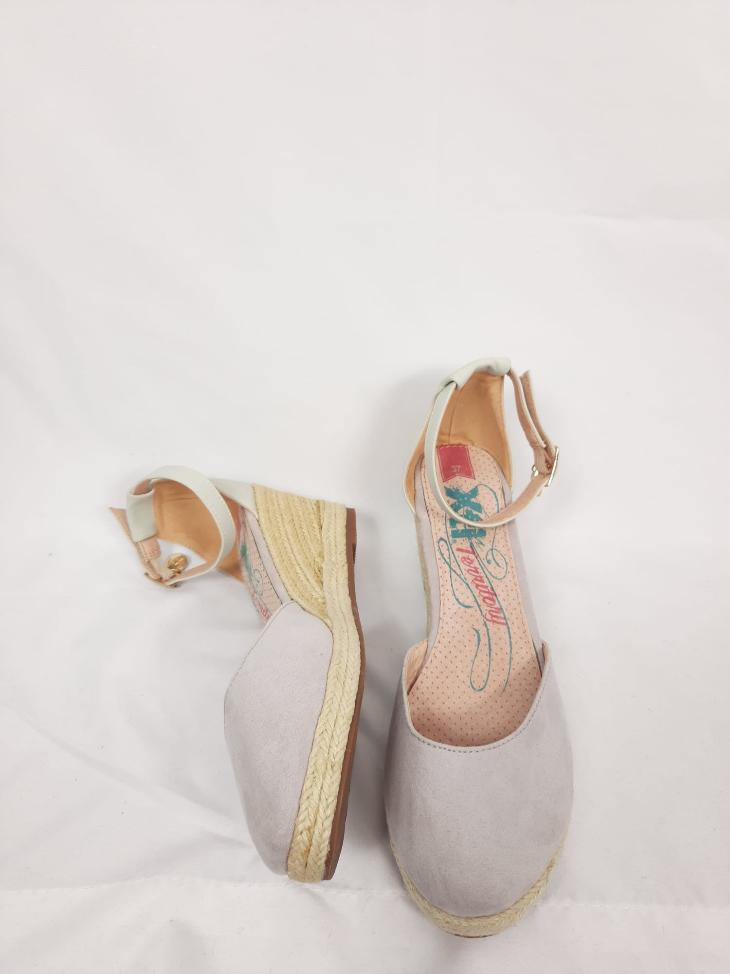 Xti. Gray suede and faux leather wedge in gray/lilac and beige. 6cm wedge.