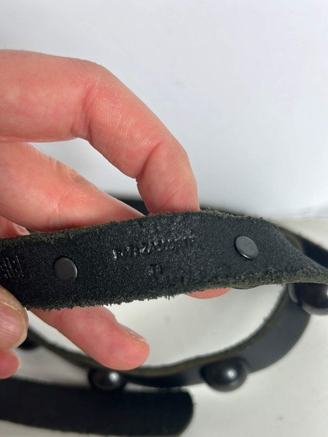 Double-wrap leather and studded belt. Fits a size 36/38.