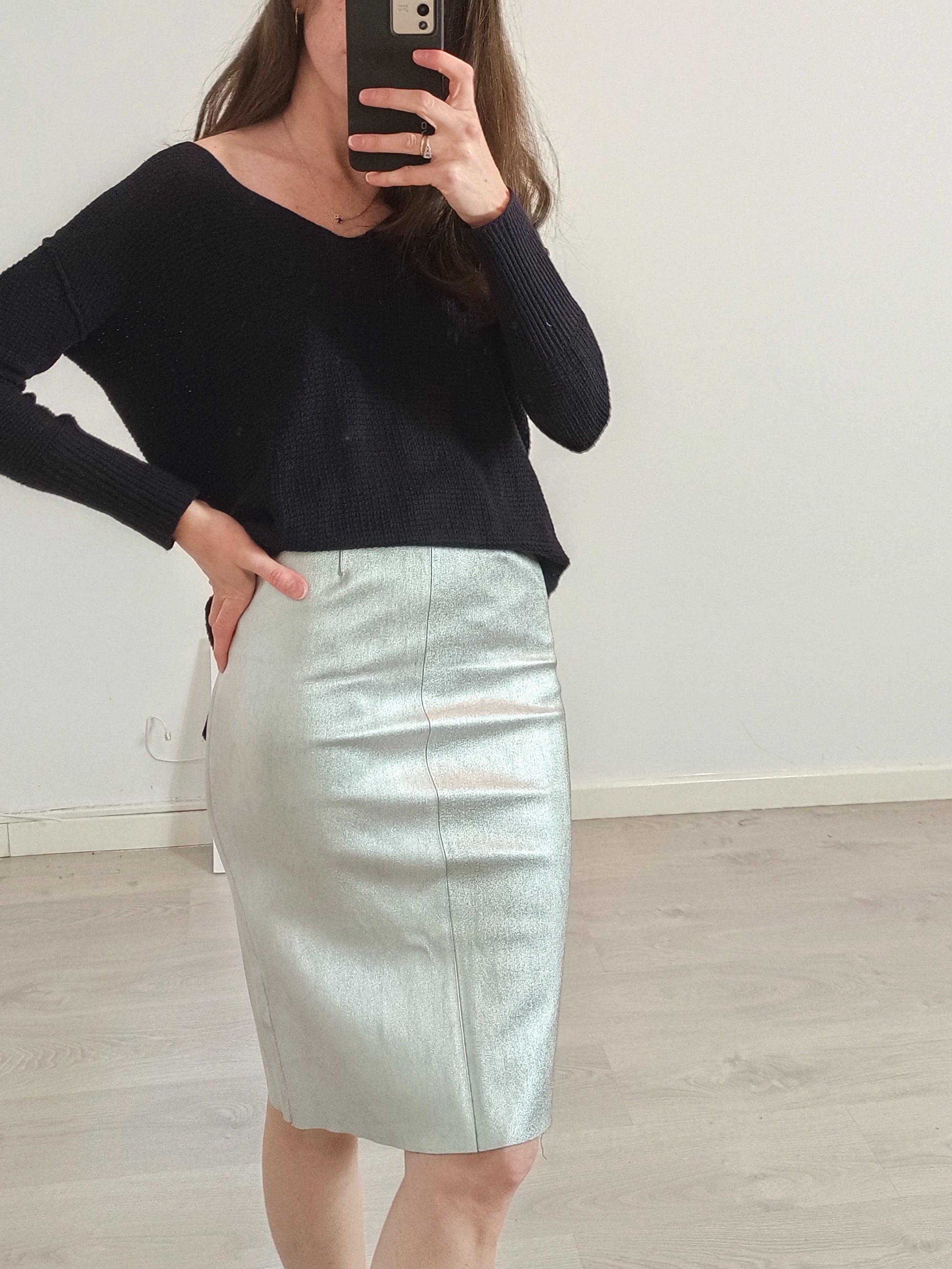 ZADIG&VOLTAIRE. Silver leather midi skirt. Size 36
