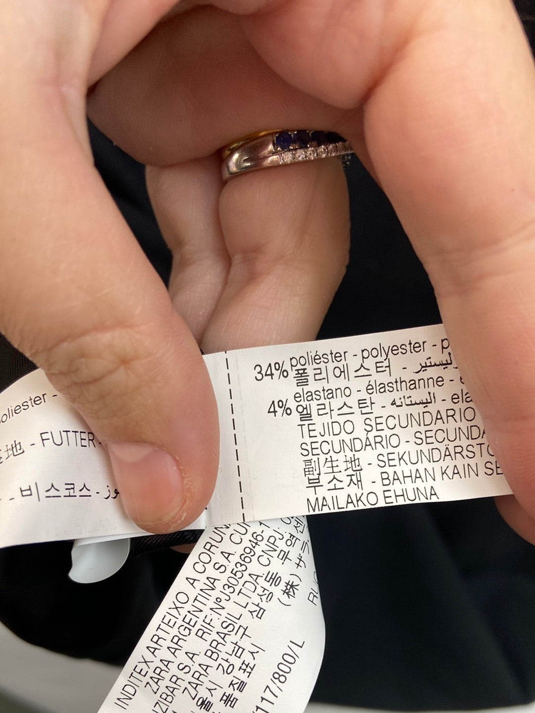 Long, straight, two-tone blazer with a pink lapel. It features a large bow detail at the back and is 79 cm long.