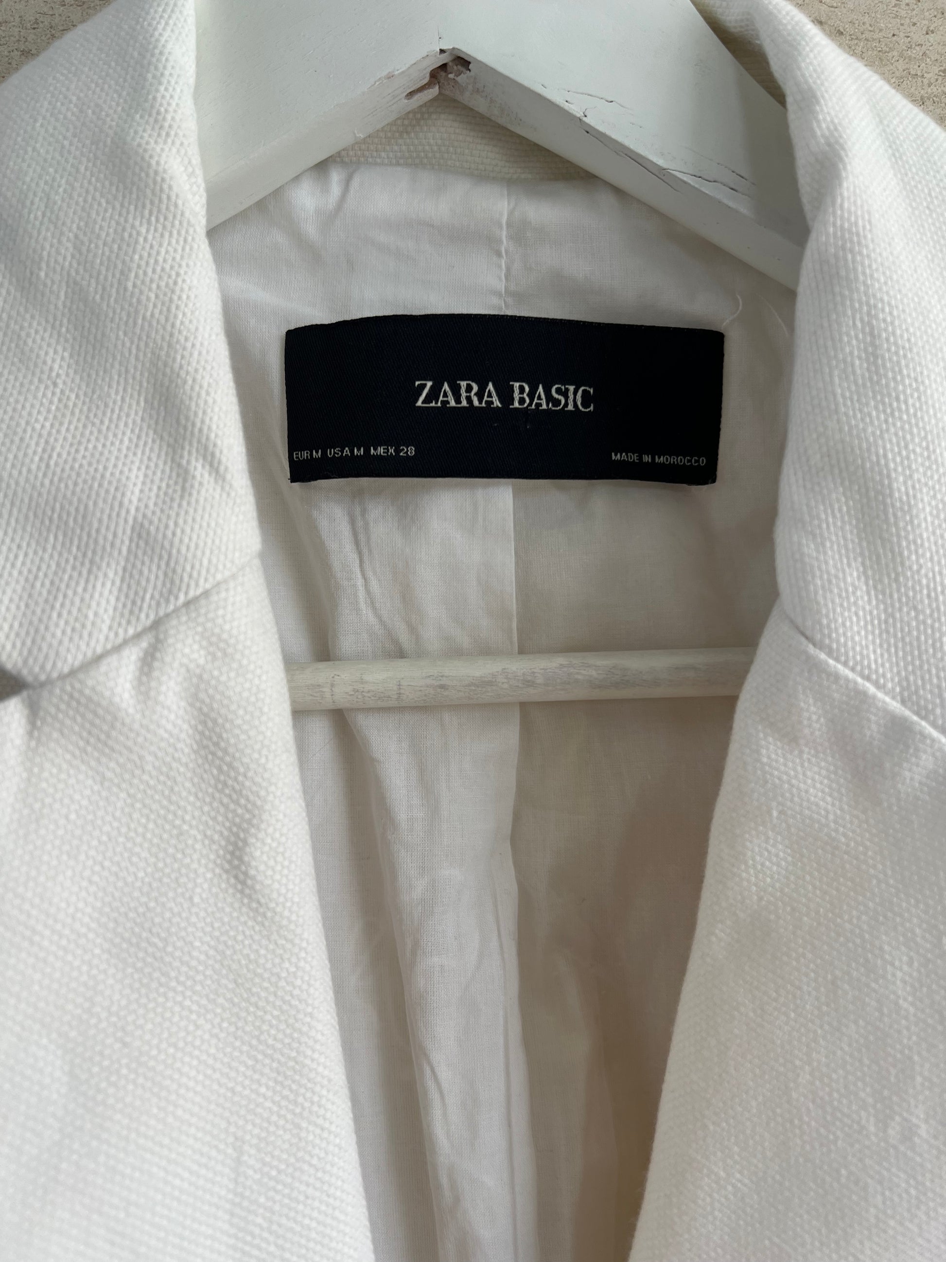 Textured white blazer. Non-stretch. 55 cm from armpit to armpit and 83 cm long.