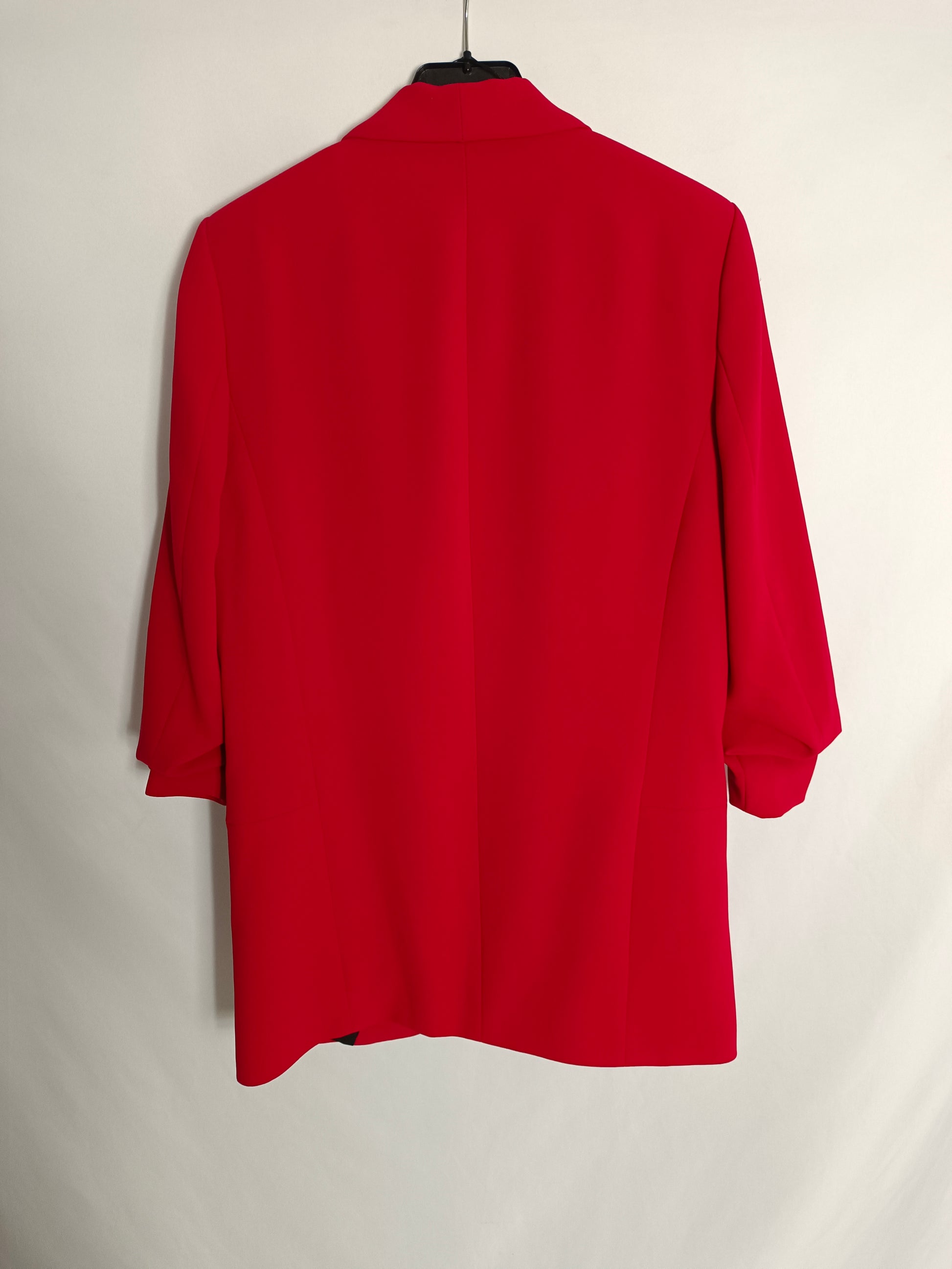Fine beige coat with 3/4 sleeves, zipper and black bow.