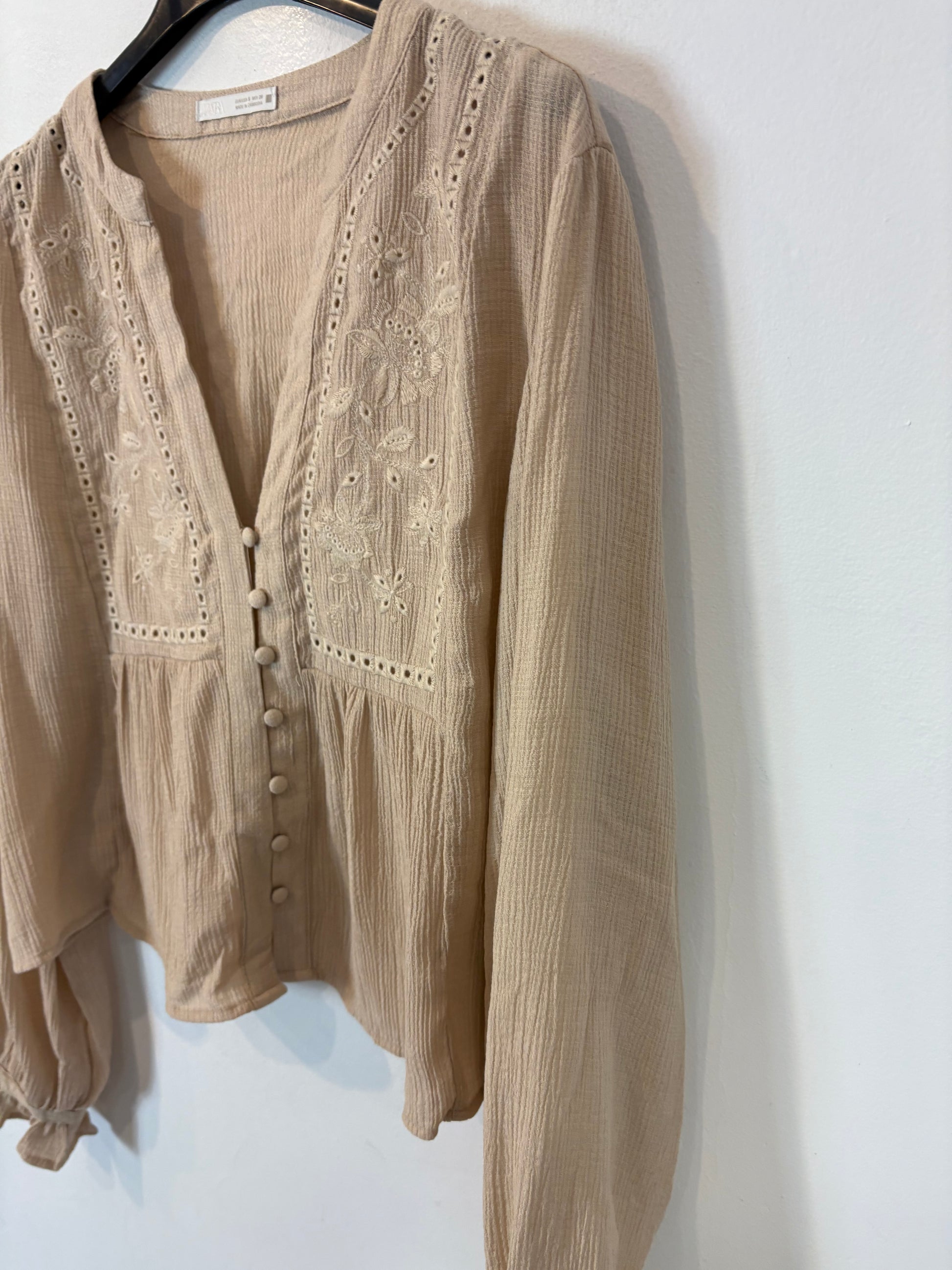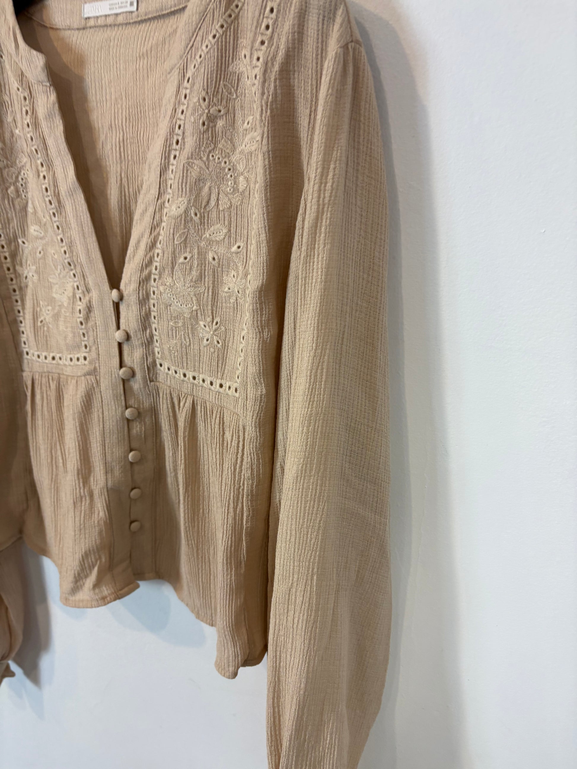 100% cashmere camel blazer with mini shoulder pads. Shoulders 39 cm, armhole to armhole 46 cm, length 66 cm.