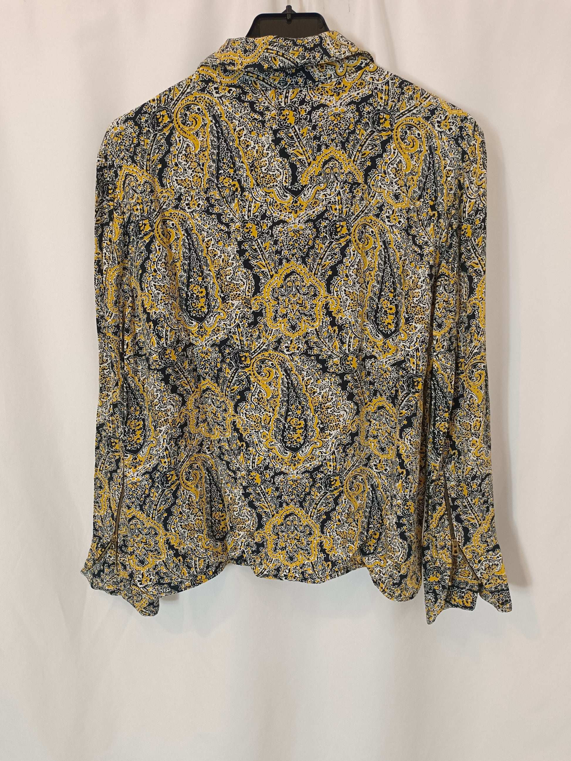 Printed blouse/bomber in yellow and black tones. Flowy with front zippers and clip-on buttons.