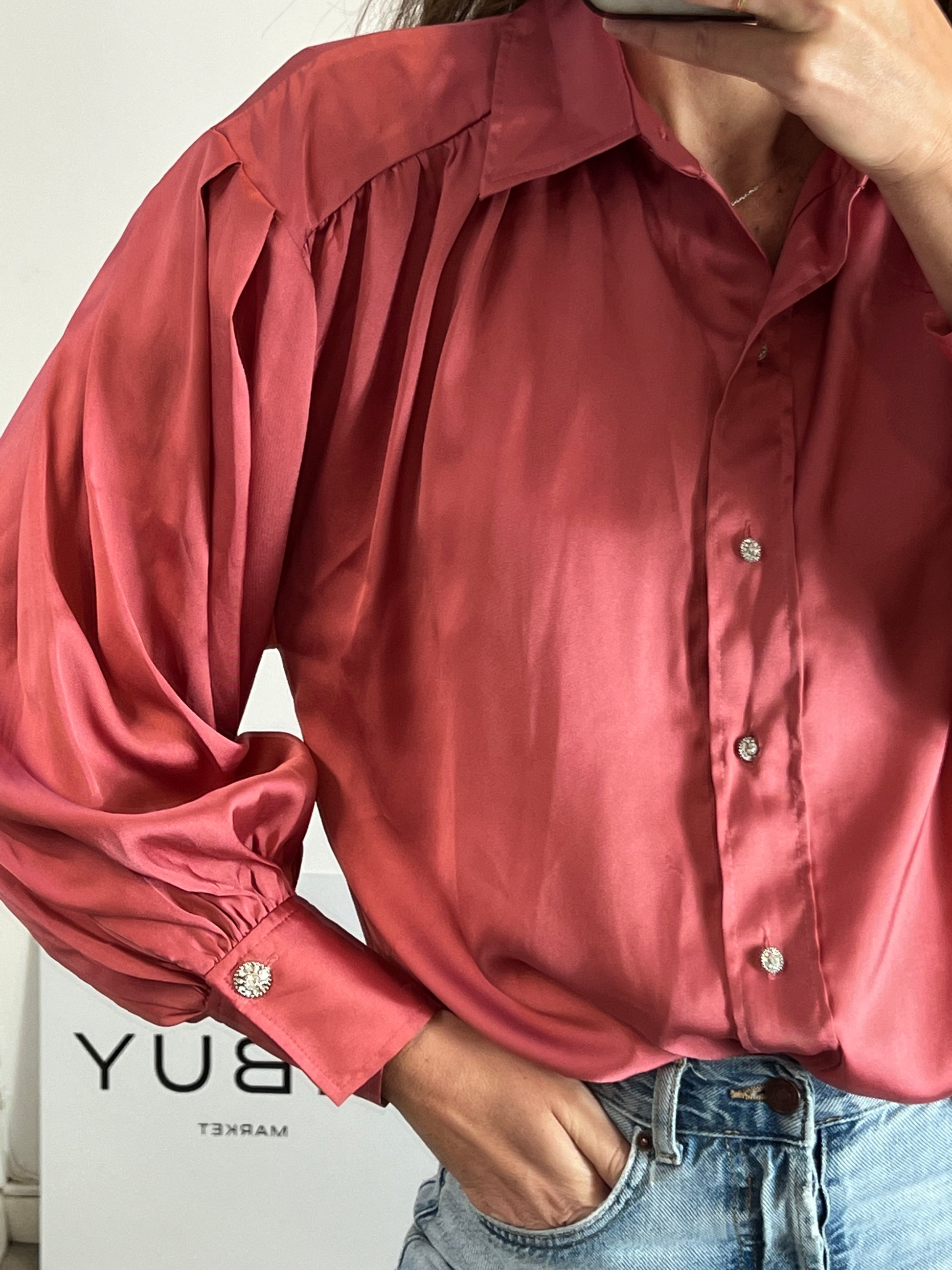 NUEVO CON ETIQUETA. Blusa fluida color salmón con botones joya