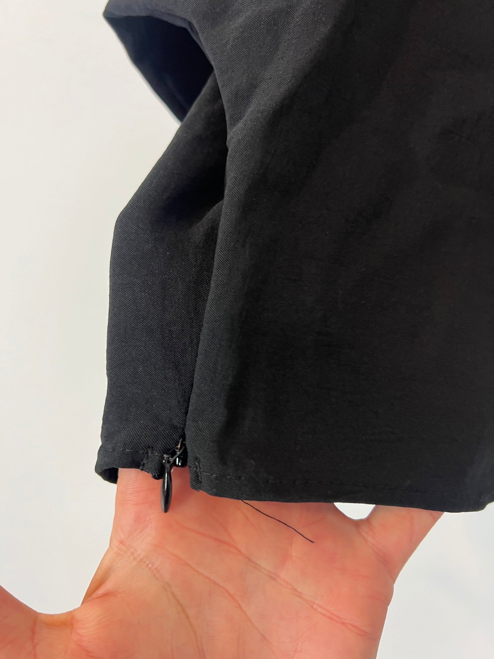 Black blouse with stud detail. Semi-elastic. 36 cm strap. 45 cm long.