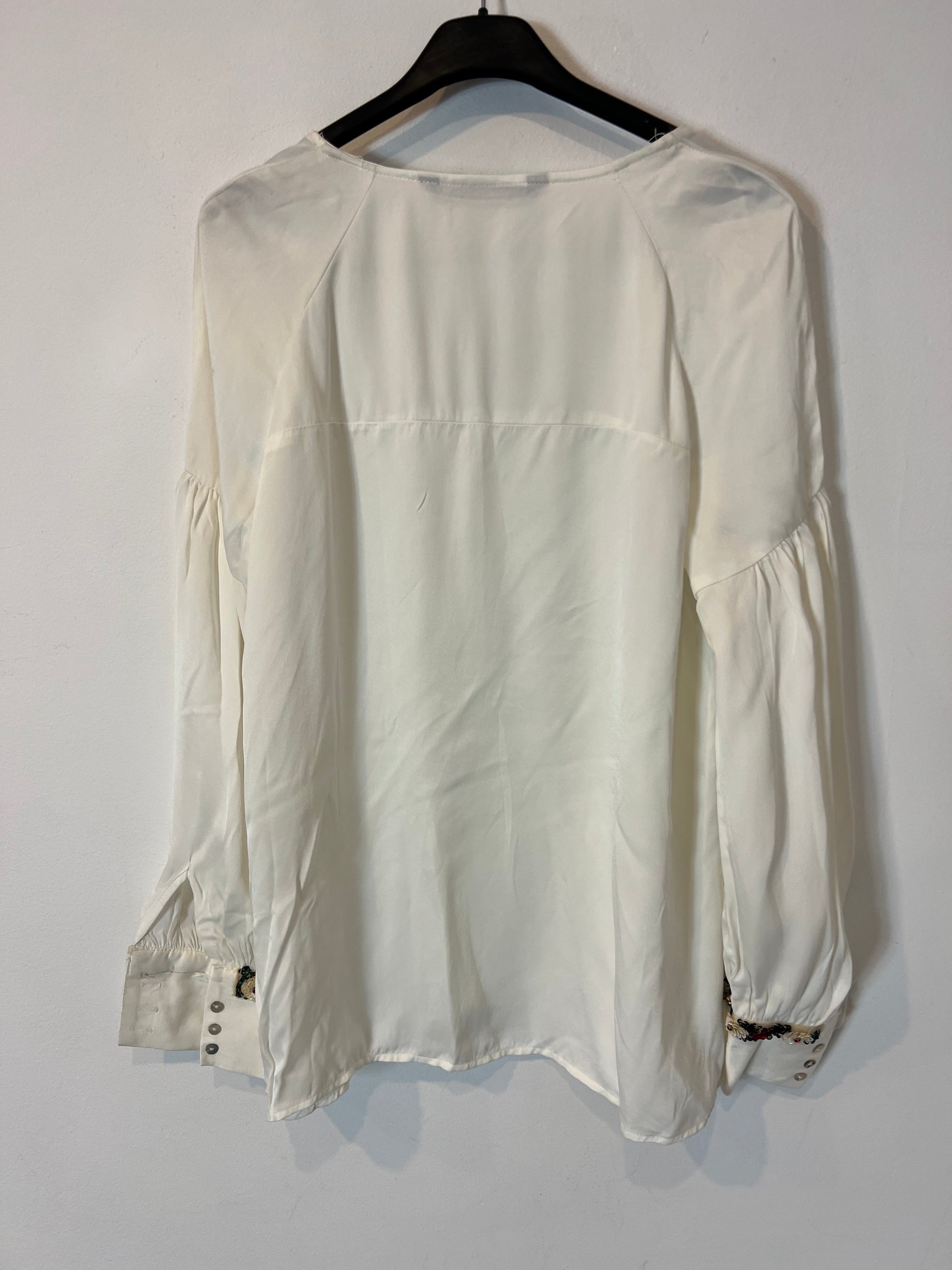 Satin blouse with cuff detail. Back 44 cm, length 63 cm.